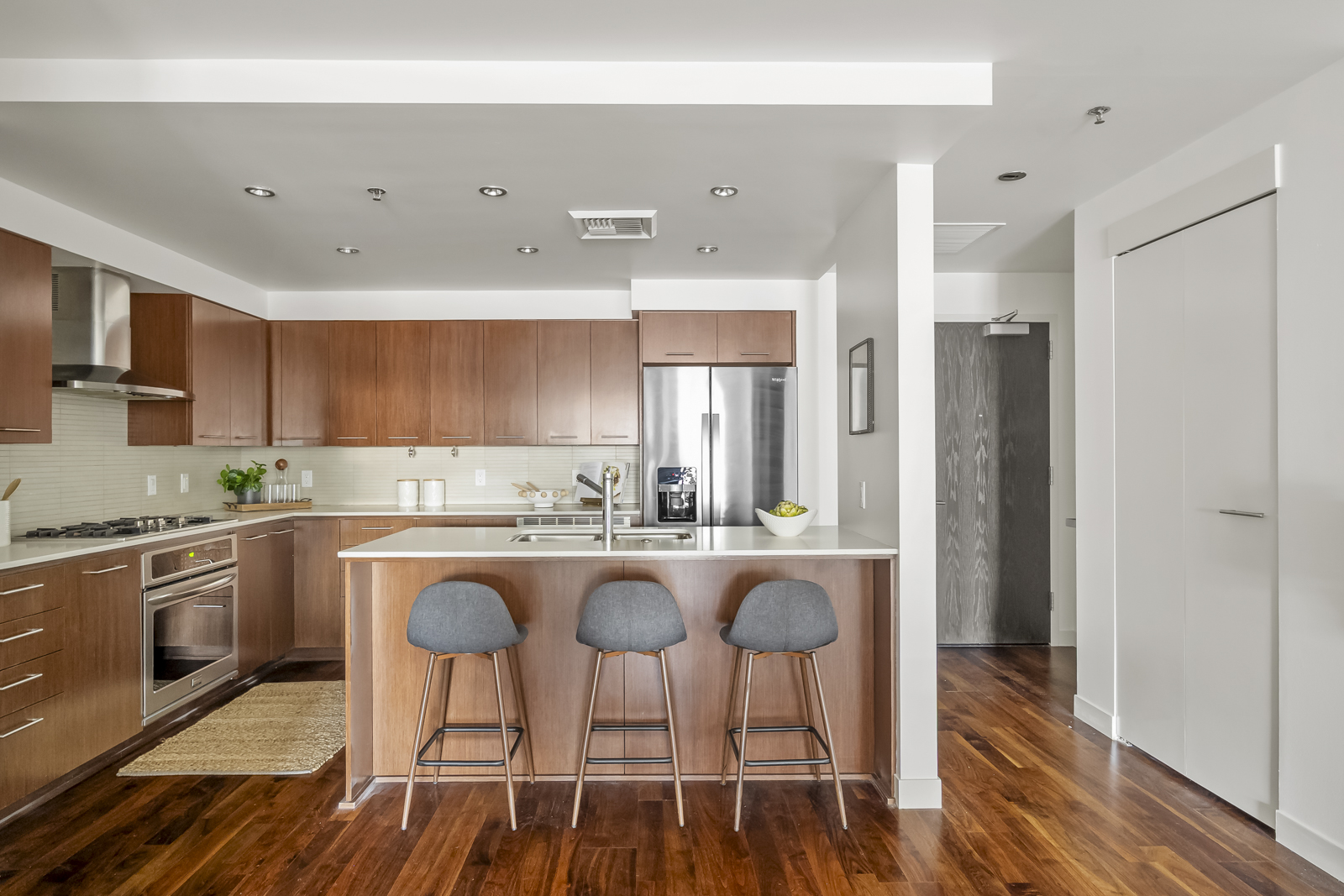 View ListingThis is Pearl living at its finest: enjoy the convenience of a secure modern building with Willamette River views that’s off the beaten path while still walkable to countless amenities. This oversized unit features an open-concept main entertaining space with hardwood floors, a cook’s kitchen with a large island, and a private covered balcony to take in the water views. Tucked into its own wing, find two comfortable bedrooms and two beautiful baths, including a primary ensuite with dual sinks, soaking tub, walk-in shower, and oversize closet.