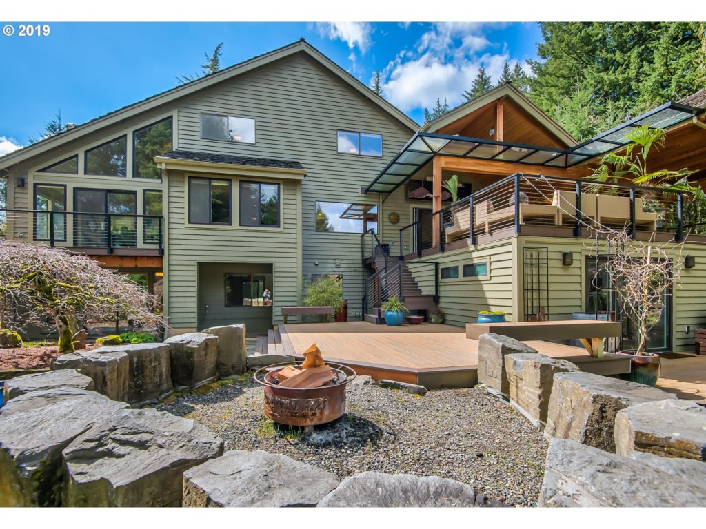 Luxurious finishes include custom, quarter-sliced African Mahogany millwork and Indian rainforest brown marble. Miele, Sub-Zero and American kitchen appliances. Peaceful bleached wood vaulted ceilings. Panoramic sliding doors off the family room and lower brewpub (yes, brewpub!). Light-drenched rooms, spa-like ensuite with heated floor and steam shower. Custom walk-in closets. Character and class combined. Tiered TimberTech decking, heated outdoor kitchen with imported wood-fired pizza oven and full tap, chilling, and grilling stations. Mature Koi pond with water features. Horseshoe pit. Basalt column firepit AKA ‘Stonehenge’. Imagine the get togethers at this place! Come see for yourself Sunday April 7 from 1 – 3 p.m.