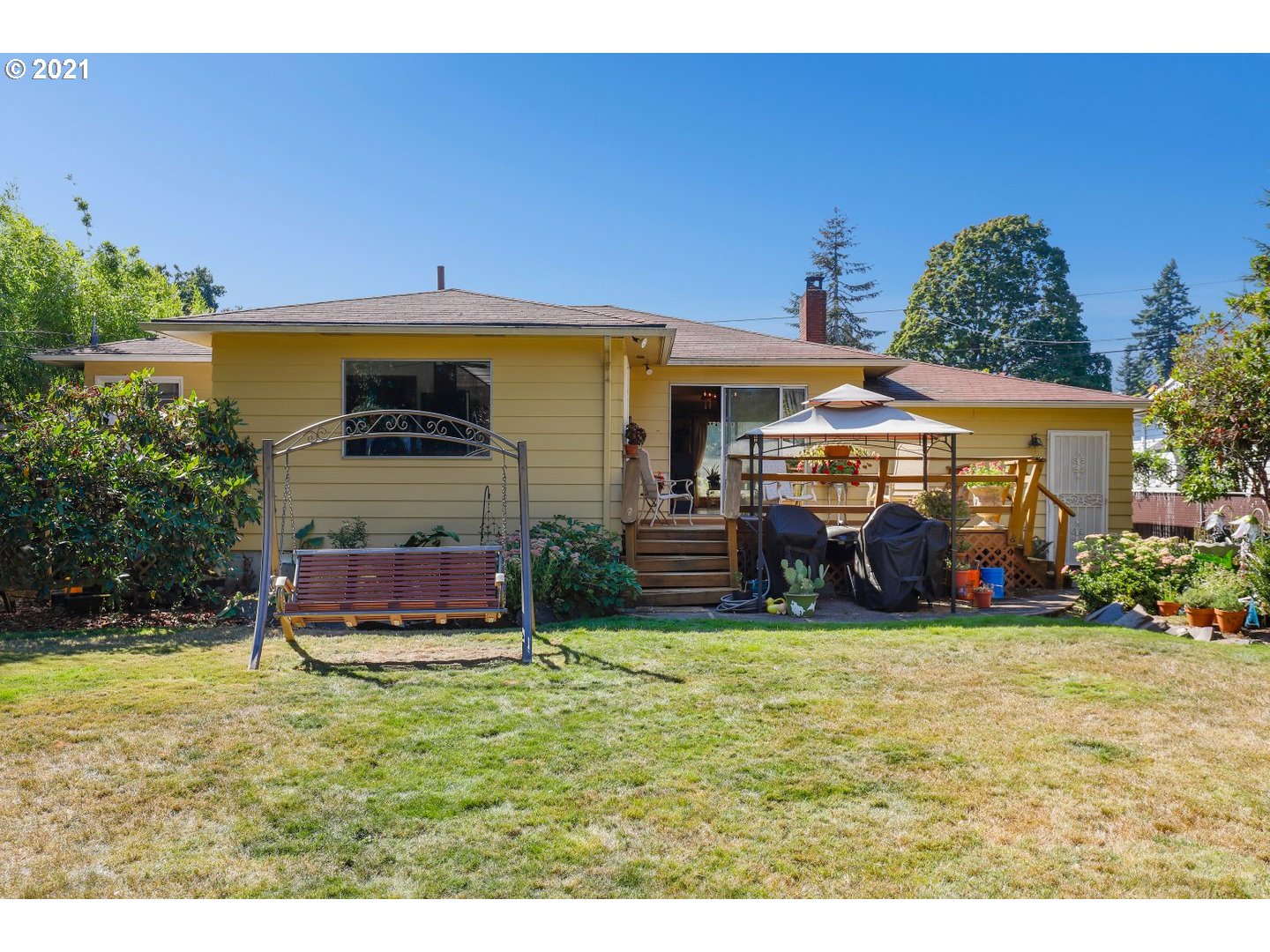 Mid century ranch with full basement! So much charm & character, enjoy views of a private landscaped backyard from the deck & dining room. Original hardwood floors, galley kitchen with SS appliances, updated main floor bathroom, 3 bedrooms on the main floor, & 1 car garage. Close to I-84 & 205 freeways. The opportunity to make this home yours is here! Tons of space for everyone.