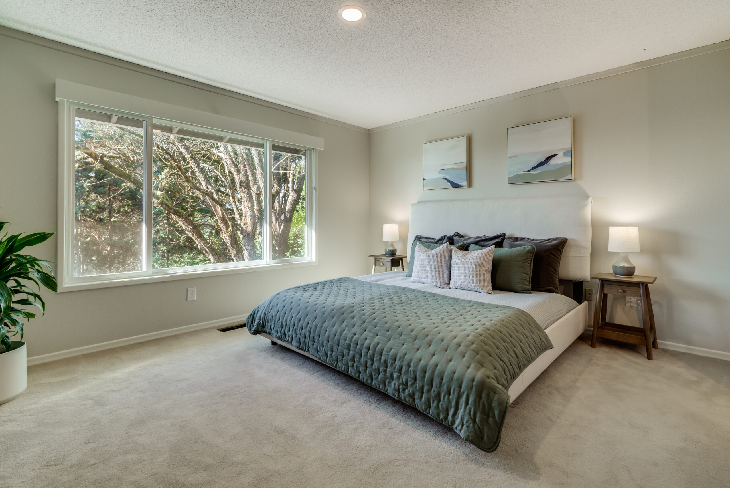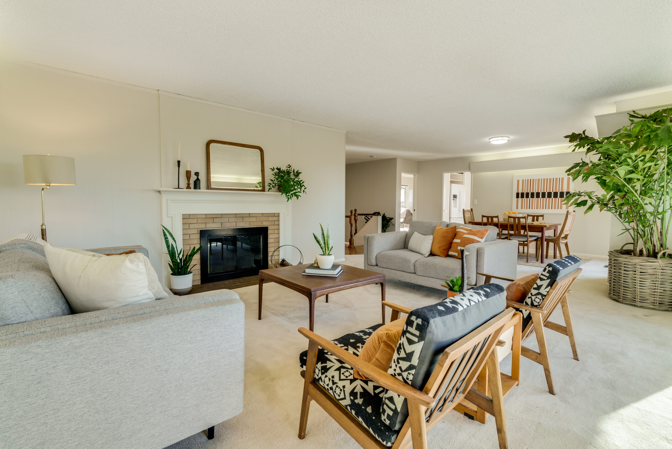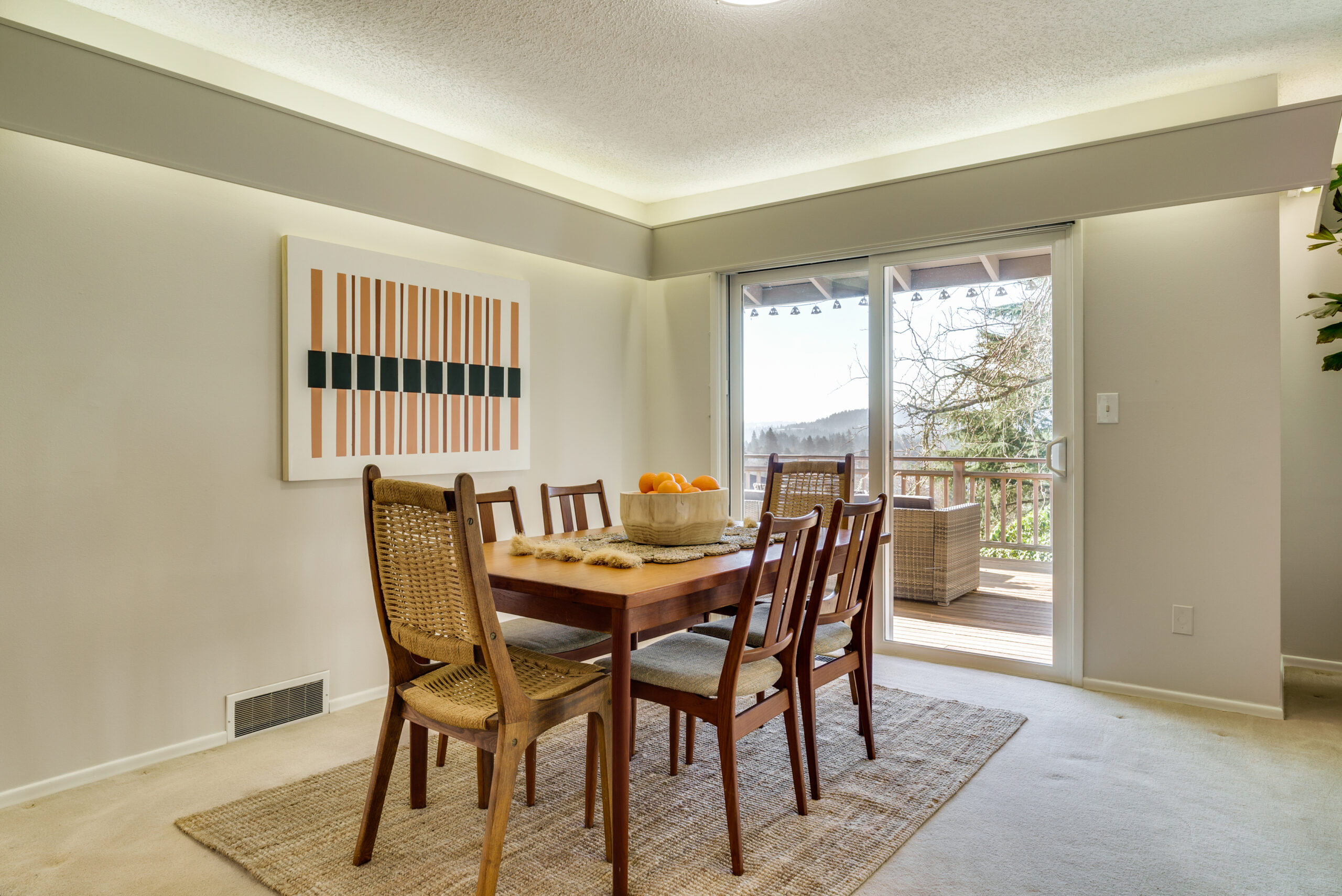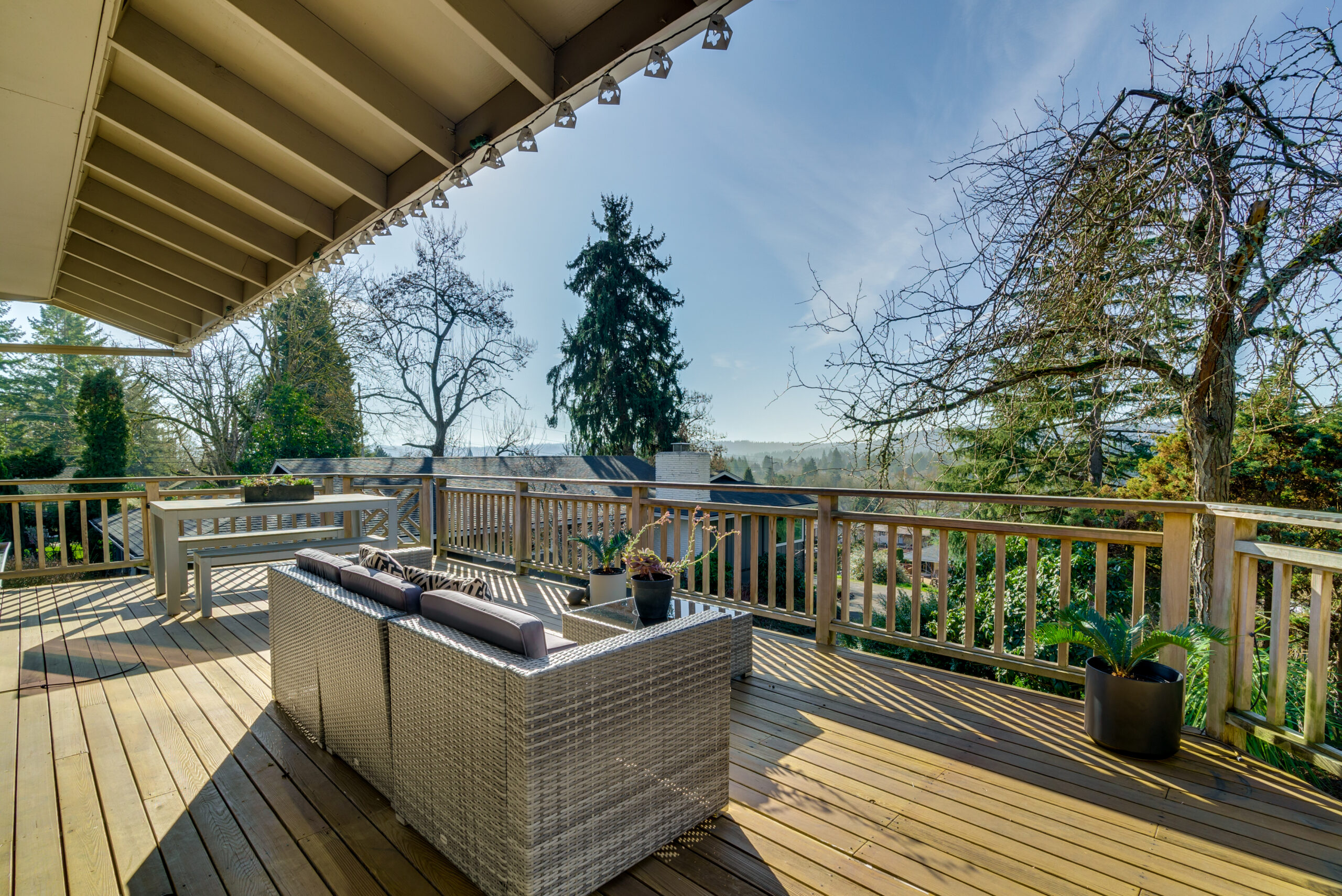 View ListingConveniently located, yet tucked away from traffic, this quiet oversized parcel beckons urban farmers, would-be orchardists, retreat seekers, and nifty party hosts. Beyond roomy, this fab Mad-Men-styled pad has generous space inside and out, including income potential, or multi-gen living. The expansive, light-filled main floor’s open luxe living/dining room with fireplace and perimeter lighting has 3 sets of sliders to the sizable deck showcasing beautiful territorial views; seen from the eat-in kitchen with garden window and en-suite primary bedroom too! Two additional bedrooms, updated hall bath, family room and even laundry- perfect for one level living! The above-grade lower level with additional entrance offers serious elbow room! Second family room with fireplace, updated 2nd kitchen and 3rd bathroom, plus 2 bed/office/flex rooms has been a great rental. Parking aplenty and glorious grounds for green thumbs!