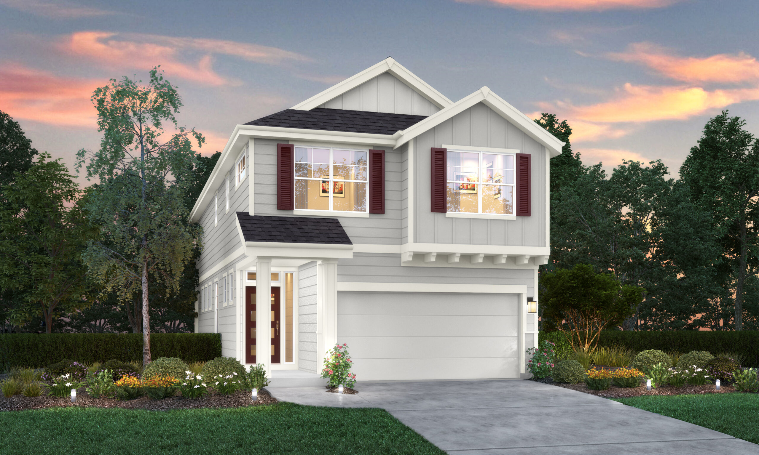 This floor plan is full of thoughtfully-designed spaces like the mudroom entry from the garage, the first floor pocket office for all your work-from-home needs, and the second floor loft area perfect for a media or workout room. The covered patio allows for time spent outdoors in the rain or shine, and the primary bedroom suite is a lavish retreat with a soaker tub with tile surround and a tile-walled shower.