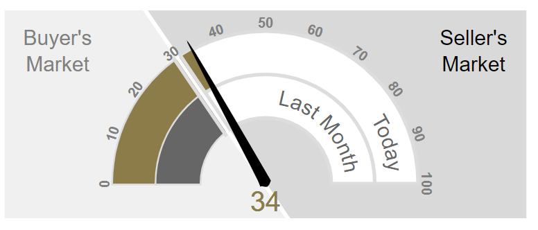 The Market Action Index answers “How’s the Market?” by comparing rate of sales versus inventory. A balanced has a MAI of 30. Anything above is trending toward a seller’s market and anything below is trending toward a buyer’s market. The current MAI is 34 compared to last month’s at 31.