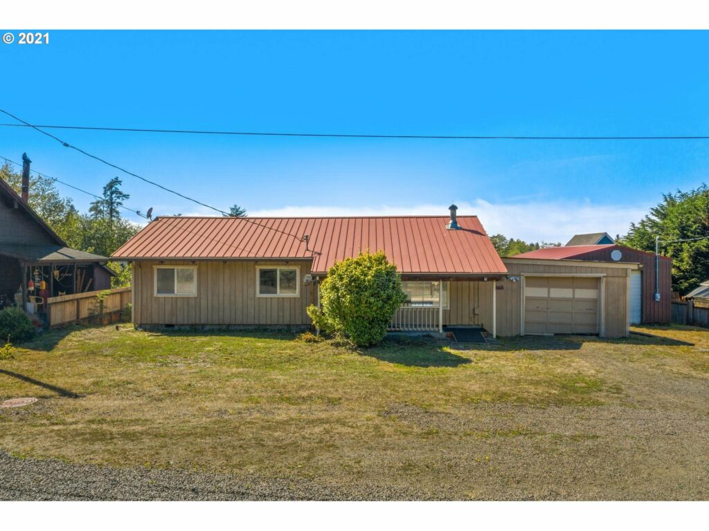 Scoop up this 1980’s coastal ranch located on an oversized lot (.23 acres) in Rockaway Beach. Revamp the home to showcase the vaulted wood ceilings and sliding doors to large backyard deck. Primary bedroom has sliders to the deck and a private bathroom. Second bedroom was combined with Third bedroom to create a larger bedroom. New owners could consider converting it back to 3 bedrooms. Bring your gardening ideas for the large backyard and outbuilding to store your boat or RV.