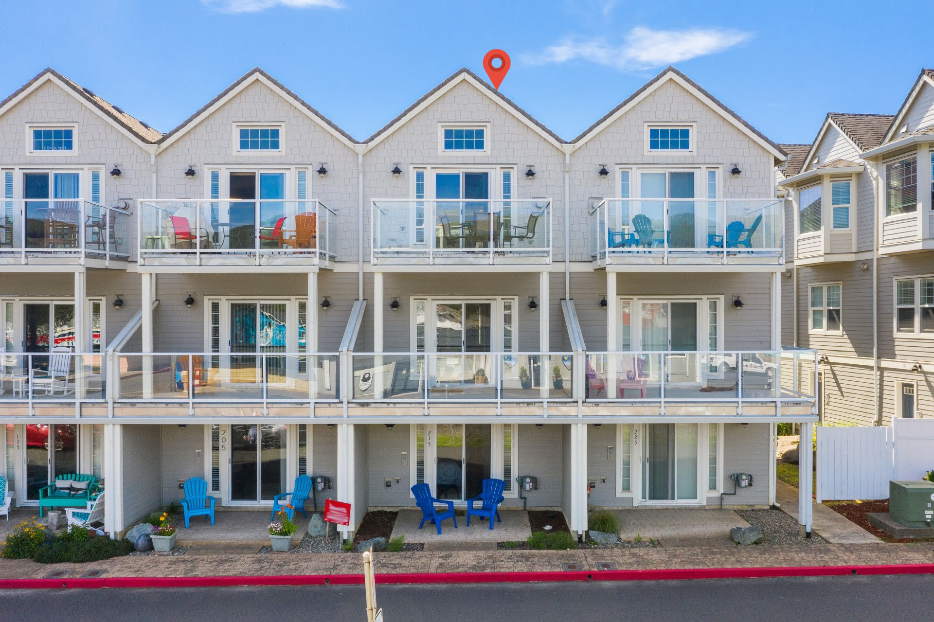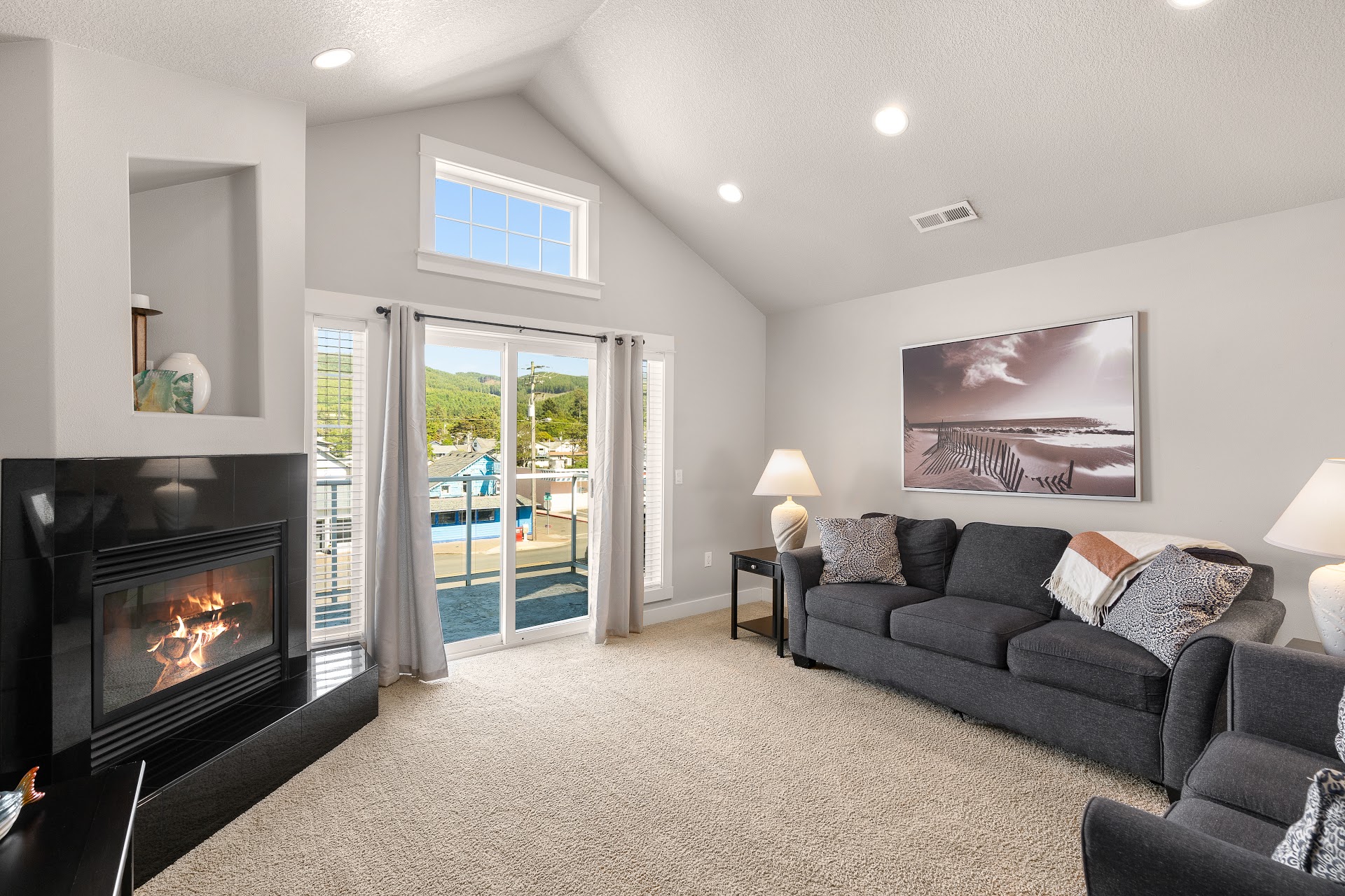 This radiant fully-furnished townhome with mountain views overlooking the town. 1 block to beach access. 3 bedroom and 3 1/2 bath is plenty of space to relax in your coastal retreat. Natural light streams into the space from the decks & patio sliders. Great Room is located on the 3rd floor for an open & airy feel with the vaulted ceiling. 2 beds & 2 baths located on 2nd floor. Main entry, garage & tucked away bonus 3rd bedroom, is on ground level.