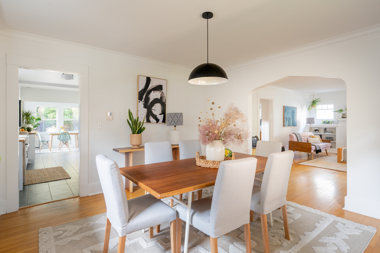 Charming Laurelhurst bungalow that perfectly blends historic character with modern upgrades. Classic features like eyebrow windows and a covered front porch lead to a sun-soaked living and formal dining room with original oak floors and built-ins.