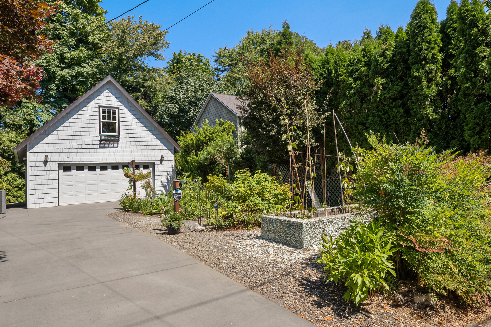 On the second lot, find an oversized two car garage with large finished heated loft space with vaulted ceilings, skylights, and bamboo floors. Utilize this as your dream rec room, work from home space, homeschool classroom, art studio, or explore its ADU potential. Don’t miss the serene separate potting room around the corner.
