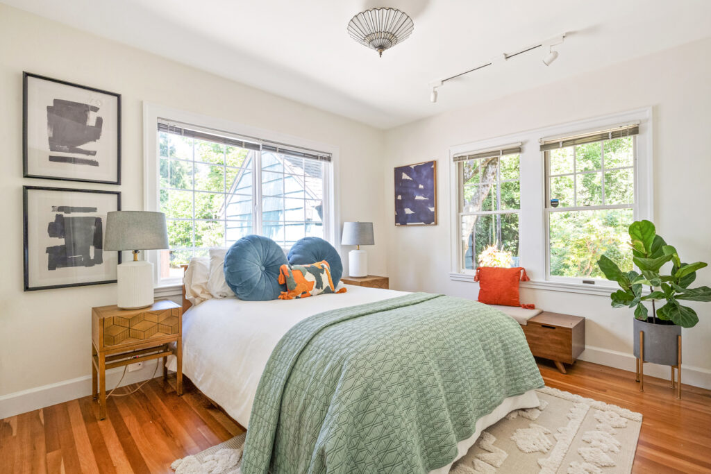 The beautifully landscaped yard is a gardener’s delight with a well-placed deck, shade trees, and raised beds with edible plants including multiple varieties of berries and apples, a Hollywood red plum tree, a pomegranate tree, tomatoes, and rhubarb. Explore developing the second lot, or enjoy having an oversized property in this coveted location, a mere .7 miles from hip Mississippi Ave and just down the street from epic sunset viewing at Mocks Crest Park.