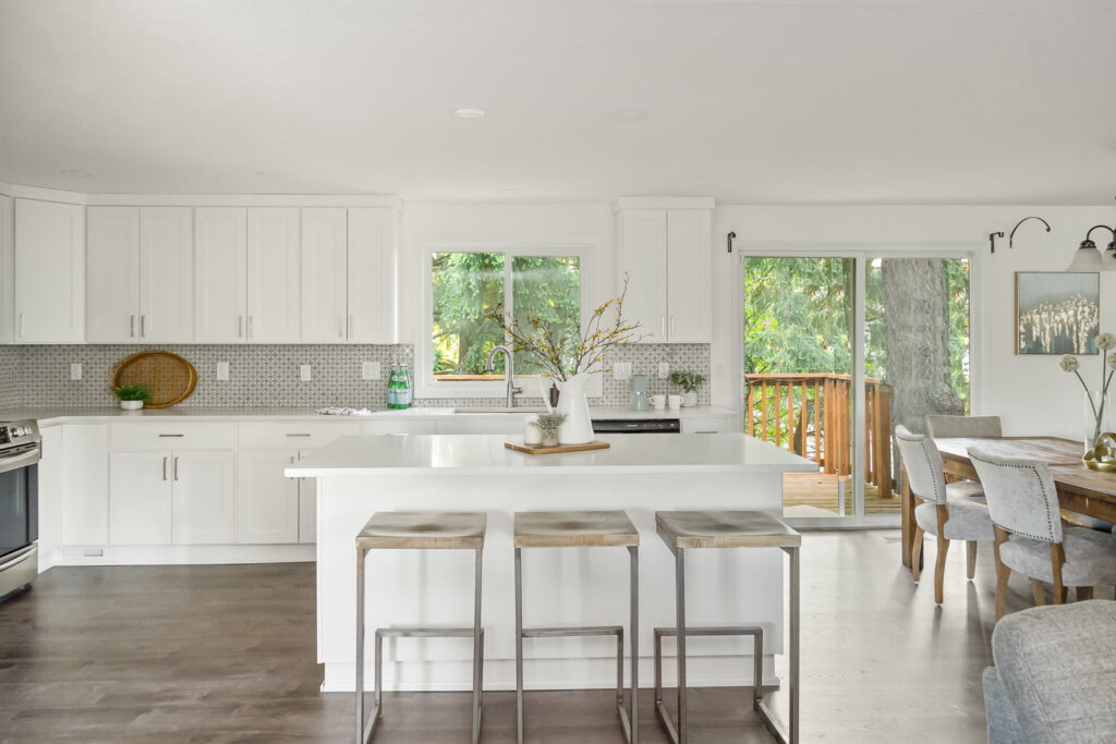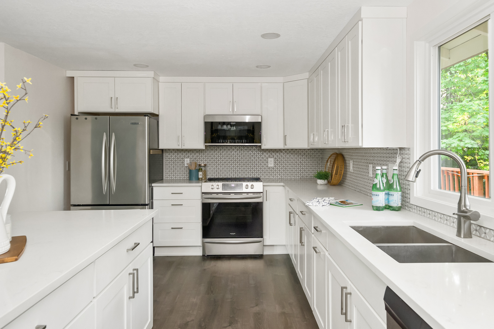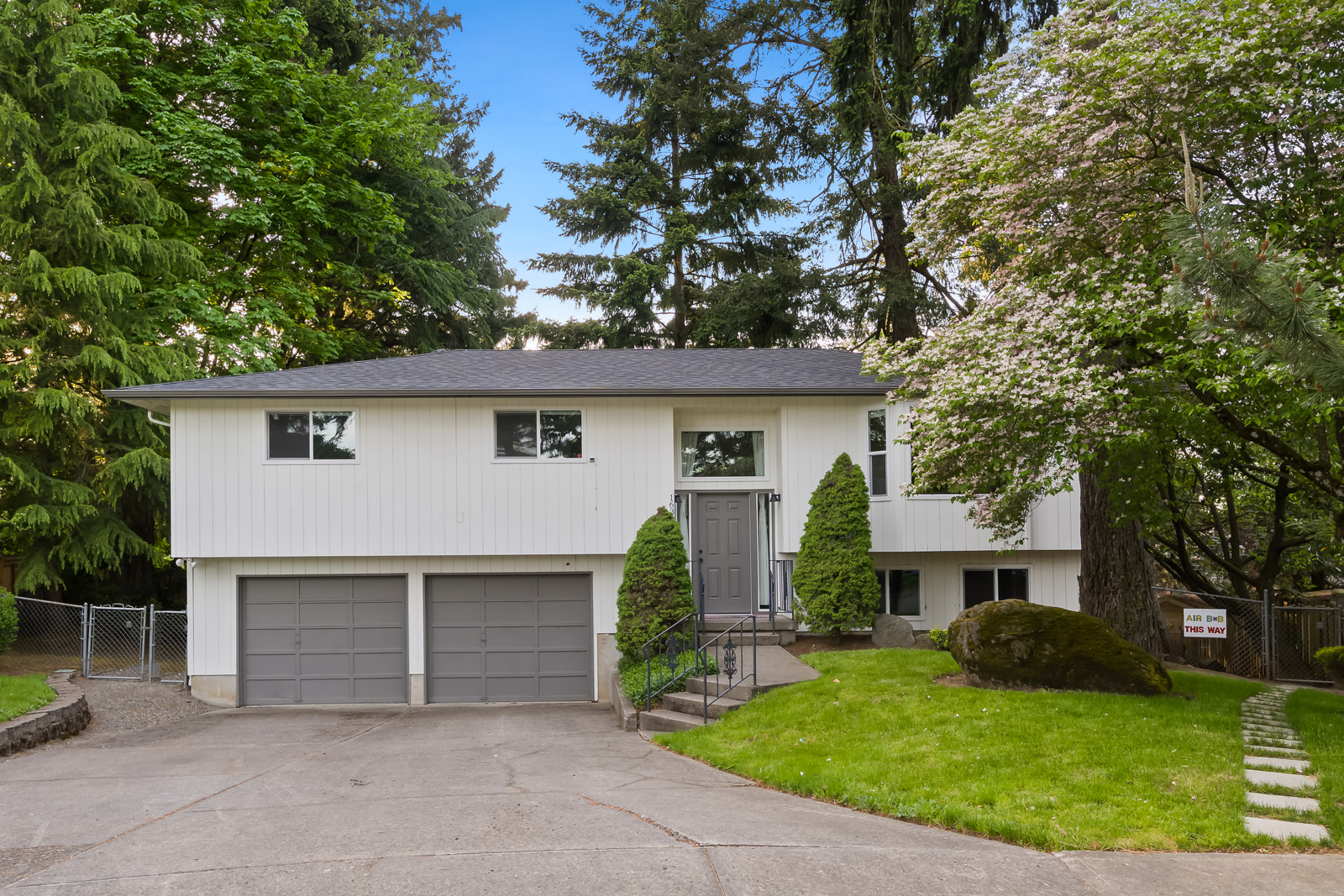 Beautifully remodeled split level, tucked onto a quiet cul de sac. Entertain in the open-concept main floor with large cook’s kitchen that’s been completely overhauled for modern tastes with designer tile, quartz, and upgraded appliances. Enjoy meals in the adjacent dining room, or on the oversized deck that spans the length of the home. Relax in the comfortable primary suite with deck access and treetop views.