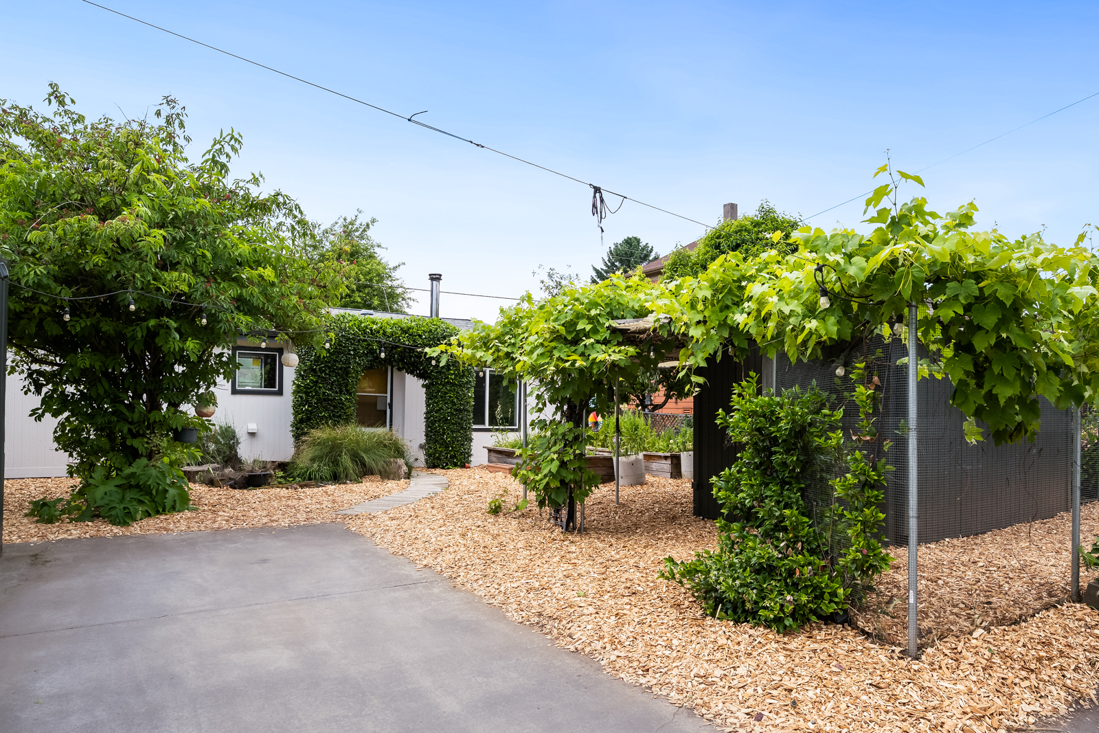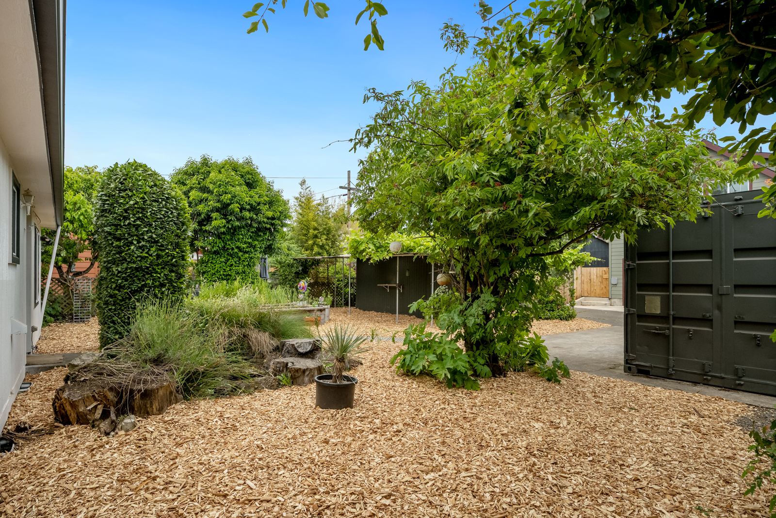 Outside, you’ll find a thoughtfully rewilded yard complete with bay laurel archway, raised beds, water feature, TufShed and refurbished shipping container. Enjoy native landscaping and mature edible plants like hearty kiwi, wasabi, rhubarb and elderberry. Harvest garlic, spinach, arugula, and more from this year’s garden.