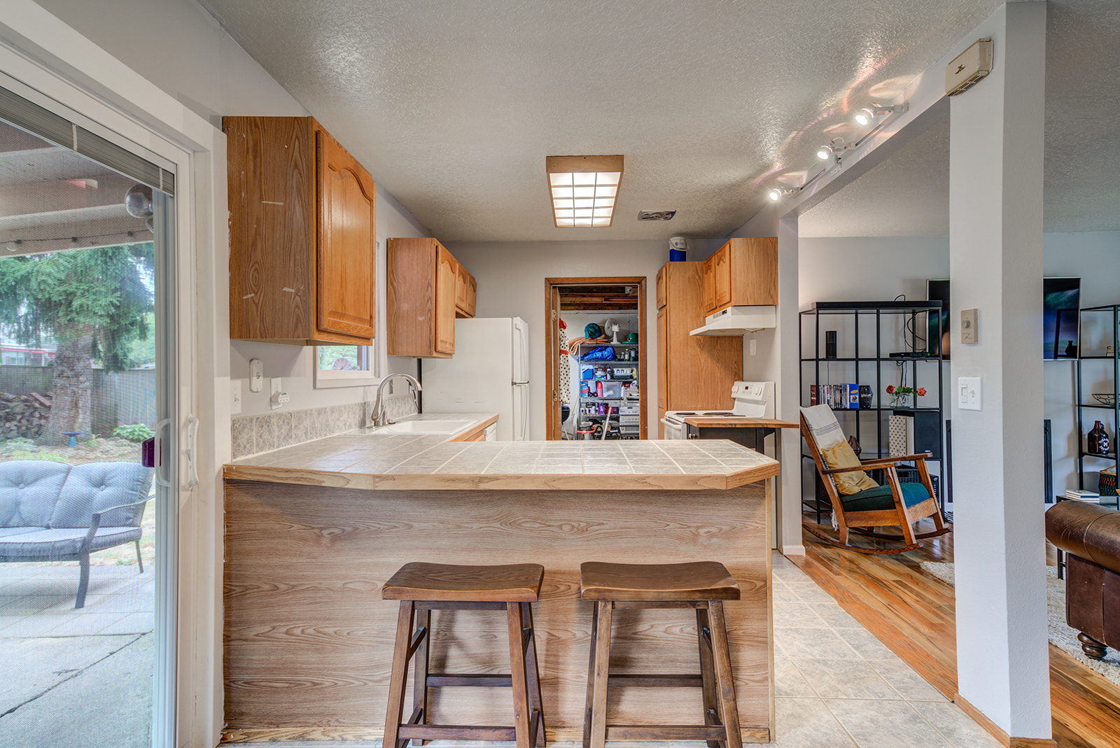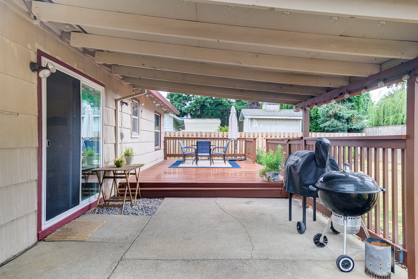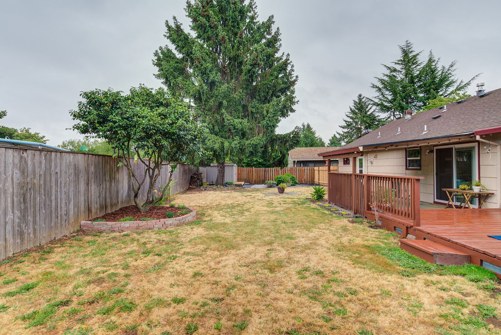 Wonderful ranch-style home! This one sits on a super quiet street on a cul-de-sac with dead end streets in all directions. The layout has been updated and offers an open flow from the living space to the kitchen, perfect for entertaining. A sliding glass door from the dining room opens to a huge covered patio and gorgeous deck. On an oversized lot with a large garden area, there’s a 2-car partially finished garage, outdoor shed, and plenty of room for toys and RV parking. Well maintained home has new roof, gas fireplace, vinyl windows, and hardwood floors throughout. Don’t miss it!