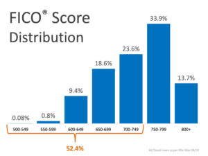 To debunk this myth, let’s take a look at Ellie Mae’s latest Origination Insight Report, which focuses on recently closed (approved) loans.As indicated in the chart above, 52.4% of approved mortgages had a credit score of 600-749.