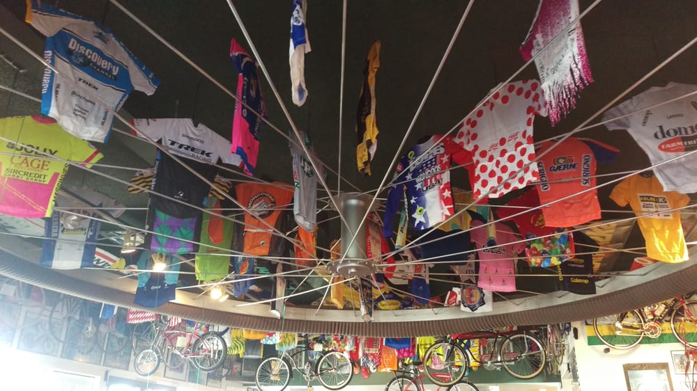 This pizzeria has bikes everywhere, making it a popular gear-head’s happy place. The ceiling features not only fan jerseys of famous racers, but an entire wheel. Offering take-and-bakes and ready-to-eat pizzas, Bortolami’s is ready to please with their depth of flavors and toppings.