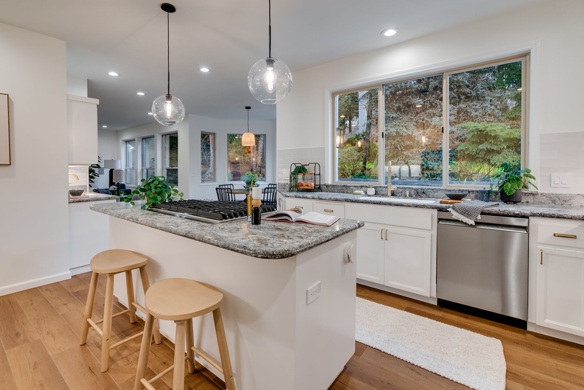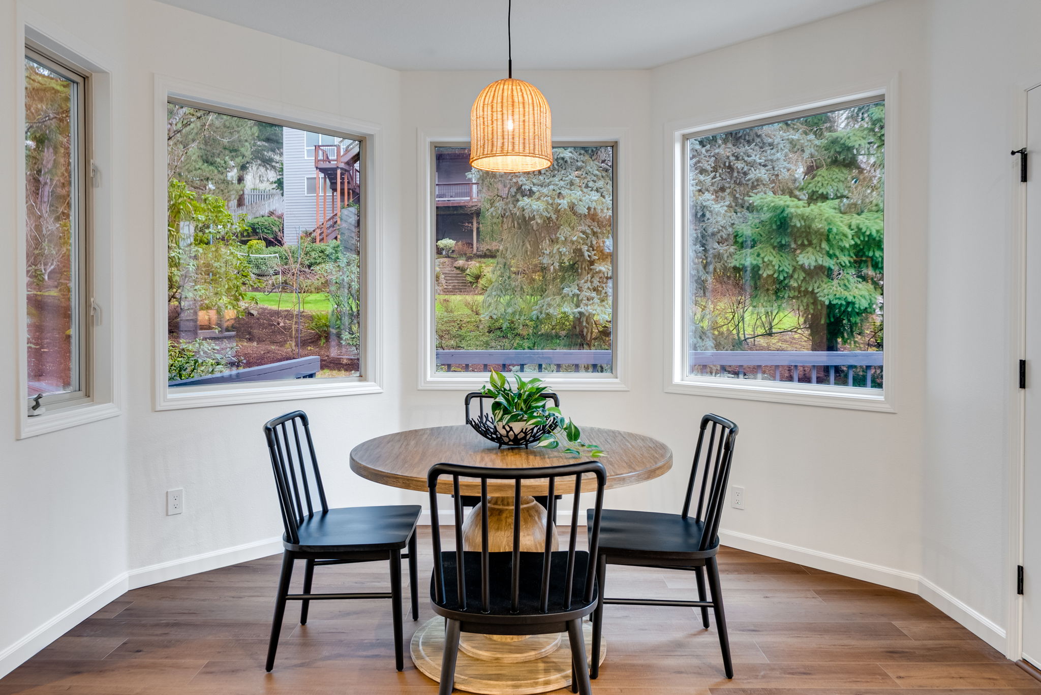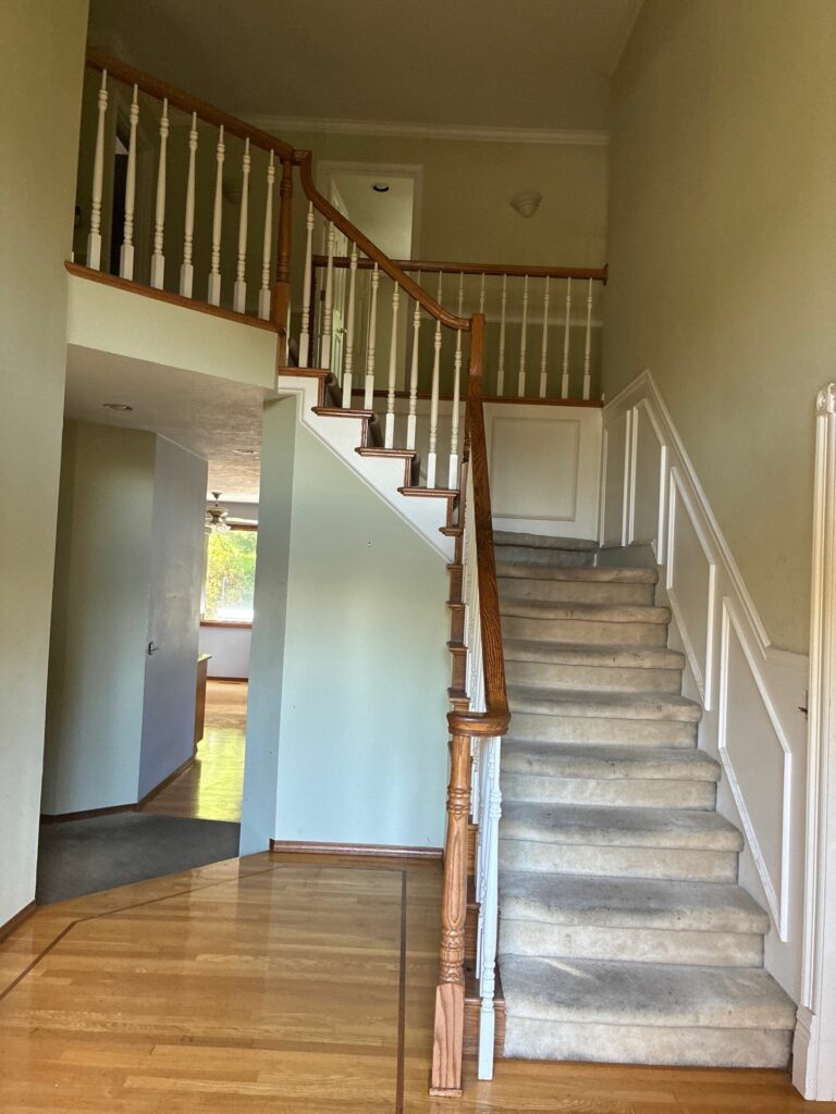 New Flooring Throughout: We could have kept the original hardwoods and replaced the carpet in the main living spaces. But that would mean carpet in the dining room, hallway and other high traffic areas. And we knew there was a good chance it would get ripped out anyway. Instead, we went with a versatile, mid toned, wood plank LVP for the main floor. Now we had a cohesive look & a durable floor that buyers would appreciate.