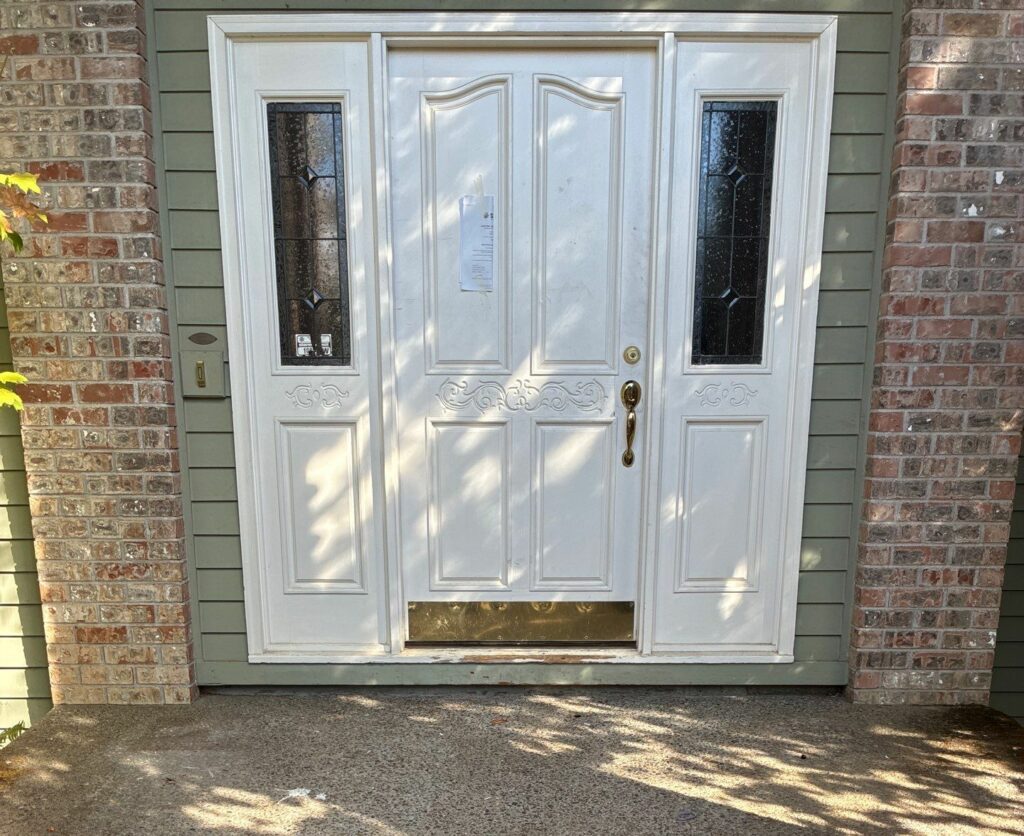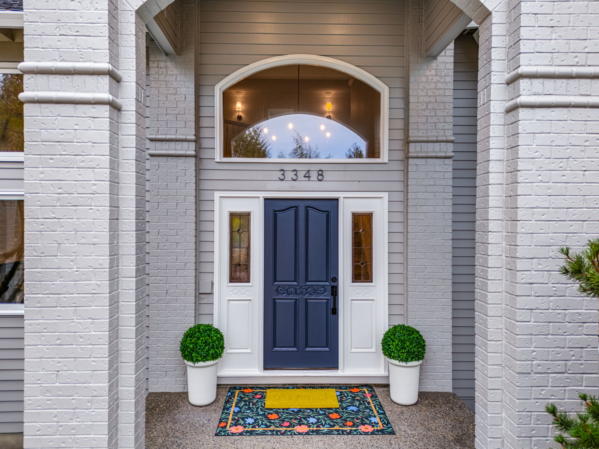 Created curb appeal: The home was originally painted a light green which was fading & it clashed with the brick. In order to give it a more updated look, we painted the house & the brick all one color, Mindful Grey by Sherwin Williams. We also replaced the door hardware & light fixtures, power washed the driveway & all walkways, and hired a landscaper!