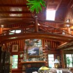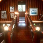 This home had been lovingly restored with all the particular “Steiner” features intact — from vertical barked logs, to wood-batten chinking, wrought iron closures, speakeasy-windows in doors, and especially the ornate balustrade from hand picked bent-wood lumber. Too many features to list, but what’s special about this house is the lantern-lit BRIDGE, spanning the living room and connecting the two sides of the home!