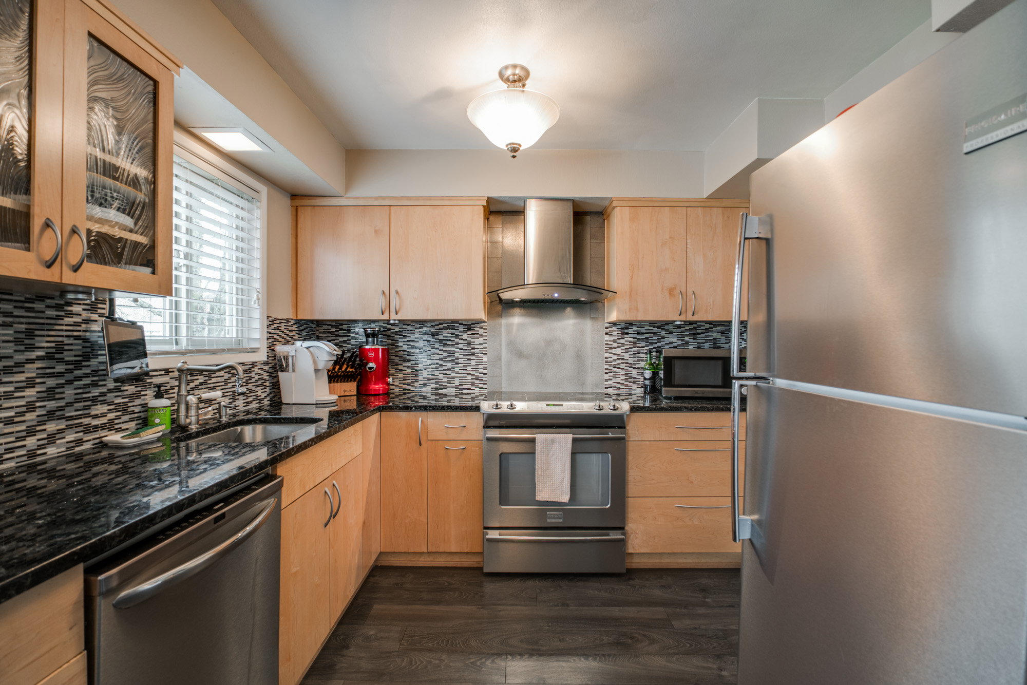 This contemporary condo in Sullivan’s Gulch is walking distance from a variety of shops & restaurants. Featuring an enclosed courtyard, the unit is on the 2nd level. Enters into an open concept living & dining area. Full of natural light, there are also hardwood floors throughout. The kitchen includes SS apps & quartz countertops. Completing the home are 2 bedrooms that share a full bathroom, a discrete utility closet, & enviable master suite.
