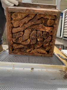 What’s amazing is that each hive has its own very distinct characteristics and personalities. One is super organized and the other is quite haphazard in its comb production. Plus they each produce their own unique taste. My 13 year old said one tasted like apricots, and the other like wildflowers. Ever since we’ve kept bees, our urban fruit production has gone bananas (actually it’s gone pears and plums, it’s the PNW after all).