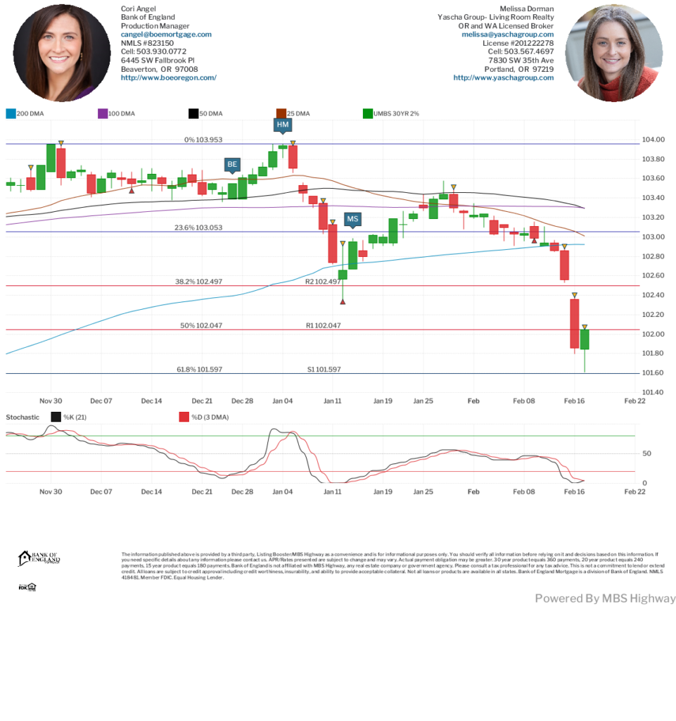 If you have been reading my blogs than you already know the market is hot and the one thing that could slow buyers down is an interest rate hike. Well…. we just saw one. About .15-.25% increase in the last few days. Below is a graph. Green shows upward trends and red shows downward trends. The more green and the higher, the lower interest rates are. On the flip side, the more red, the lower the bar, the higher the interest rate is going to be. January 4th was a great day to lock a loan, while February 16th was not.