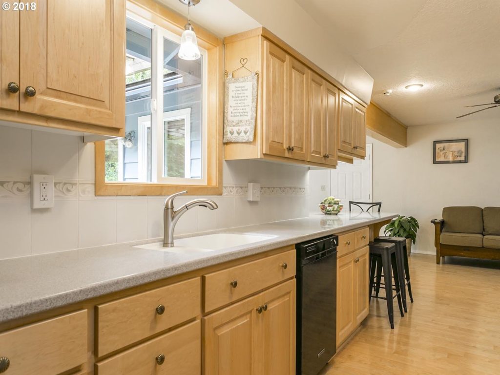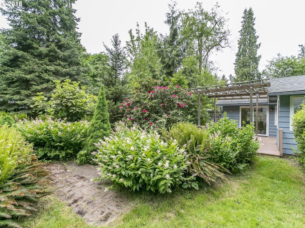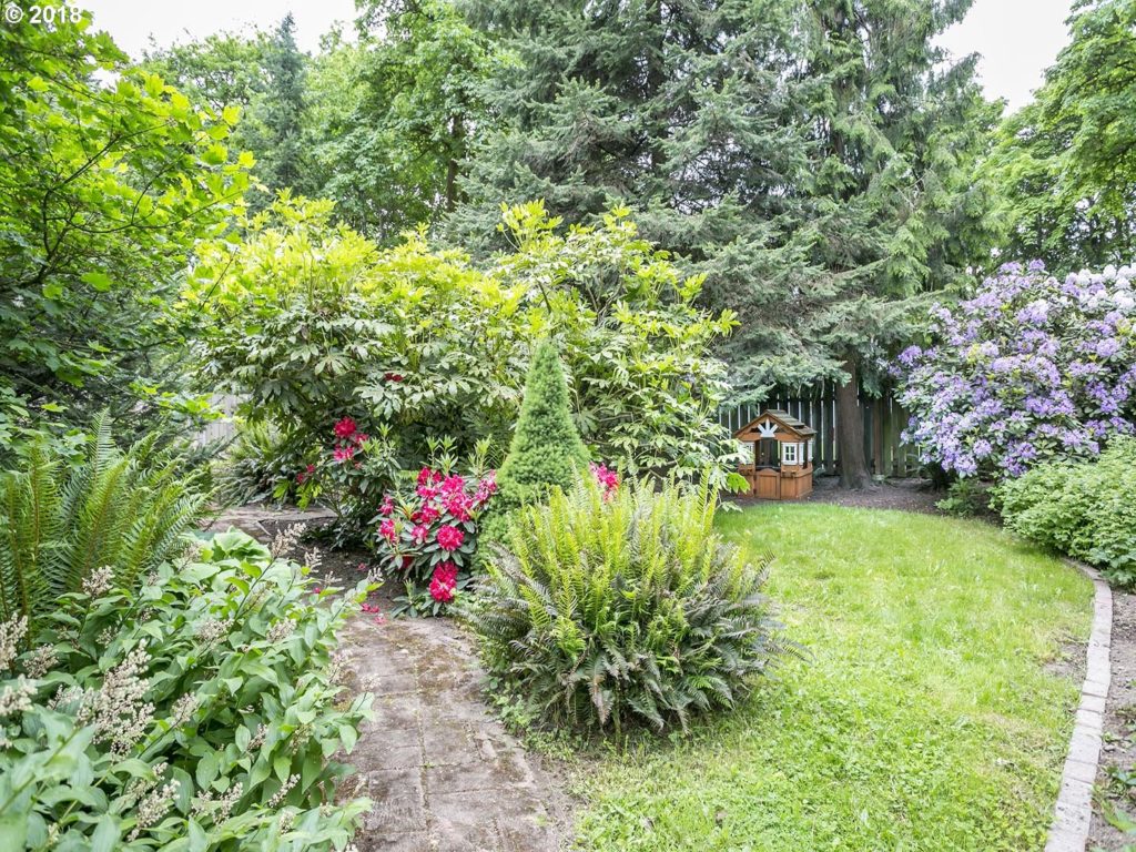 Beautiful, hard-to-find 1 level in park-like setting! 4 bedrooms 2 baths on nearly 1/4 acre. You’ll enjoy the Corian kitchen counters, 2 frplcs, skylight, vinyl windows, 2-car garage & extra parking. Many updates in the past 5 yrs, interior and exterior paint, laminate floors and carpet, kitchen range and upgraded electrical. Huge fenced yard with deck, edible garden and fruit trees. Large detached shed offers additional single car parking & shop. Easy access to Intel, Nike, Tualatin Hills National Park.