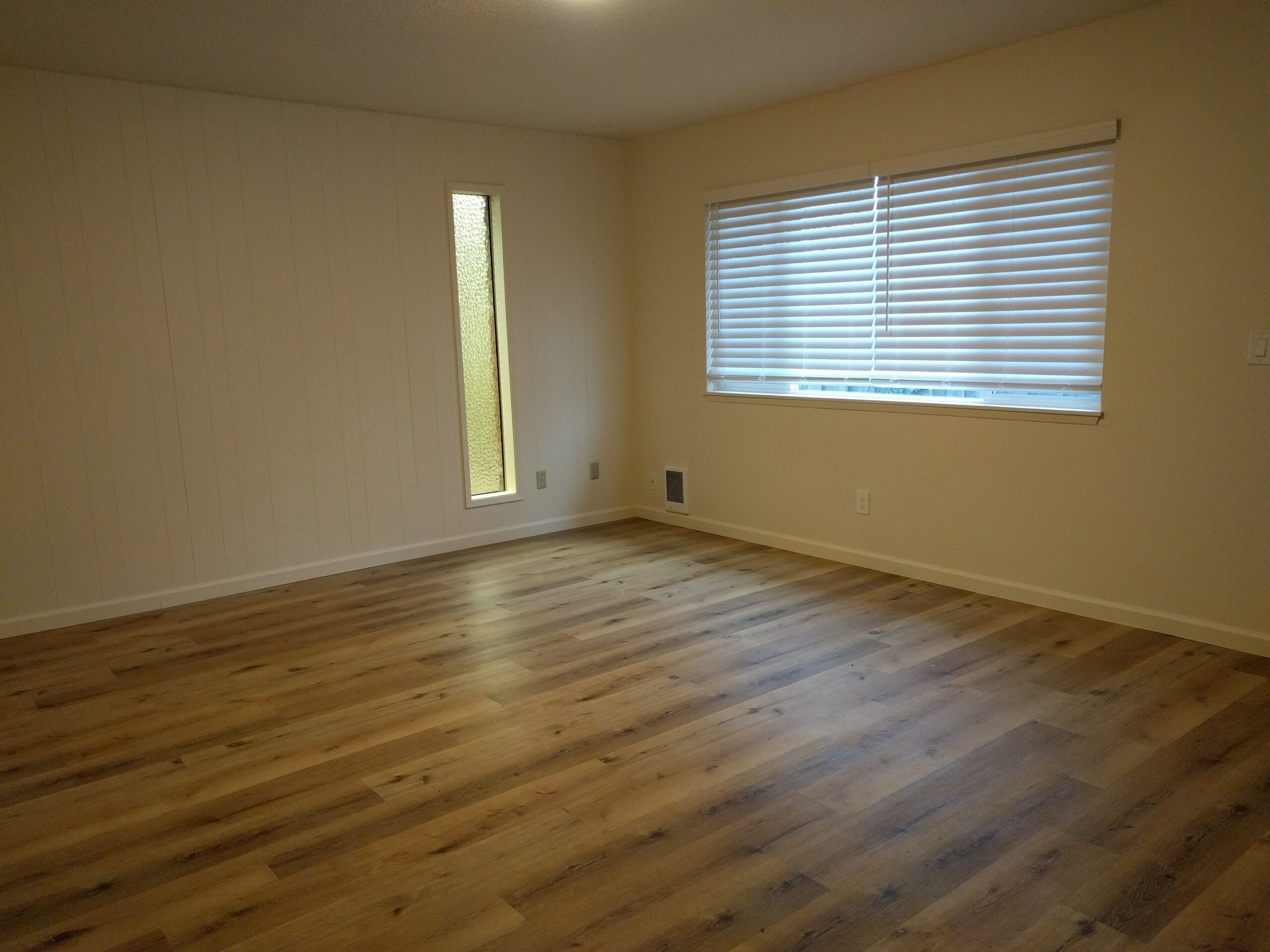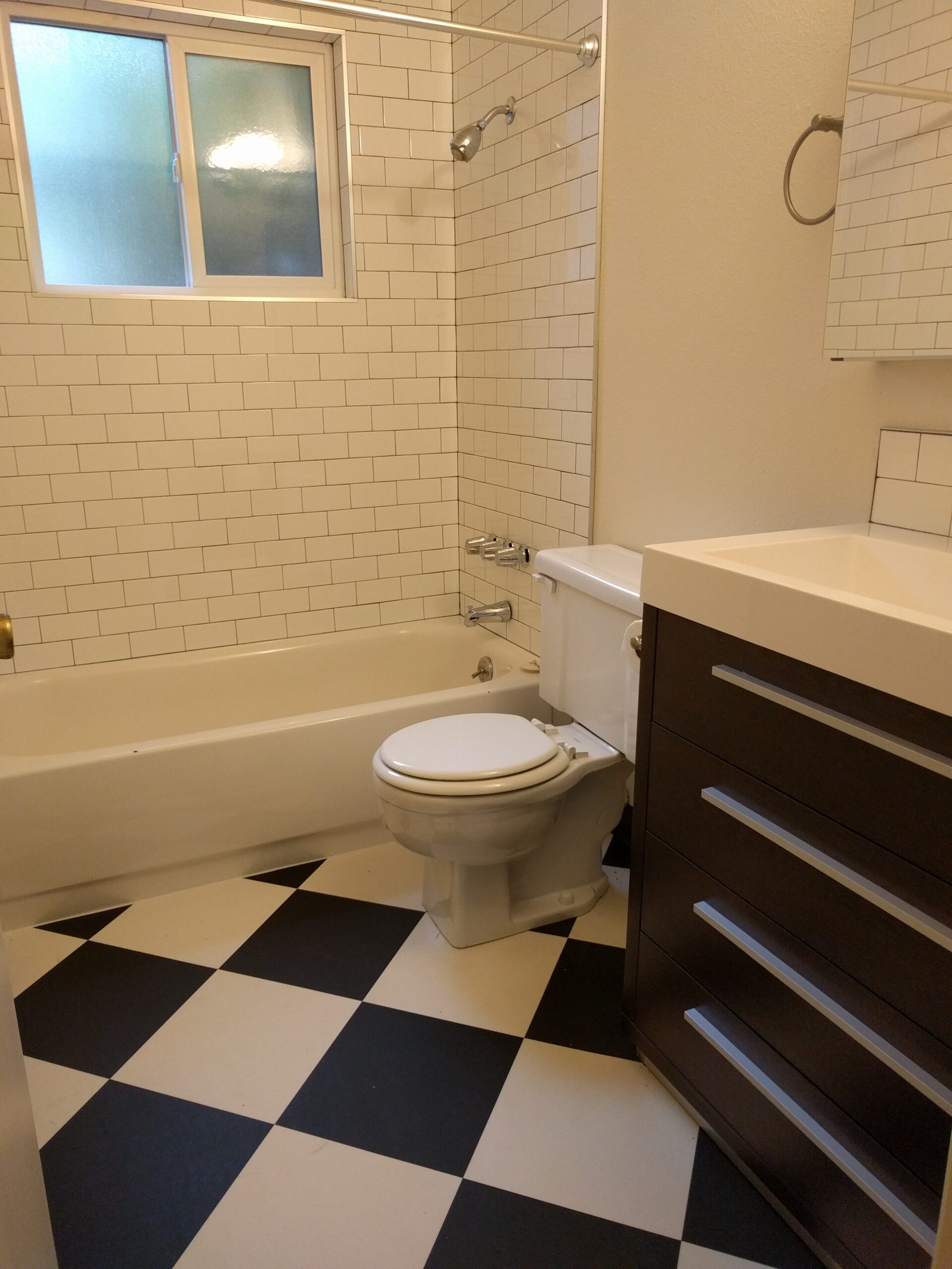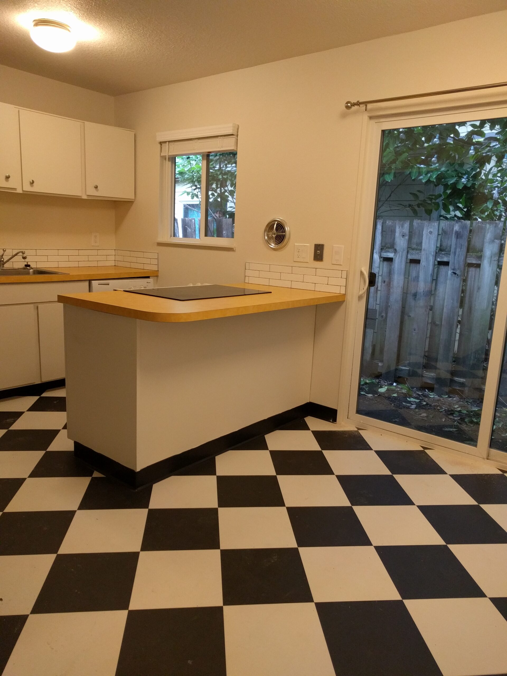 Nothing puts a smile on the face of Maintenance Manager Ash Jimenez like taking a unit that has seen years of wear and tear and making it into a beautiful space for someone to call home! This duplex unit underwent a full paint with new flooring throughout. Out with the old base board heaters and stained carpet and in with updated LVT! The yellow countertops and checkered flooring in the kitchen create a cheerfully vintage aesthetic in fulfillment of the homeowner’s vision. Fresh Subway tile in the bathroom and a brand-new modern vanity make it a clean, welcoming space.