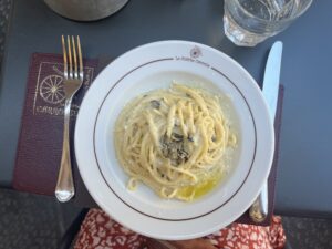 This summer, I was able to get away to Tuscany and enjoy some time with friends. While there, I enjoyed steak, shopping for leather goods, and of course, pasta. One of my favorite Italian dishes, cacio e pepe, became a new favorite.