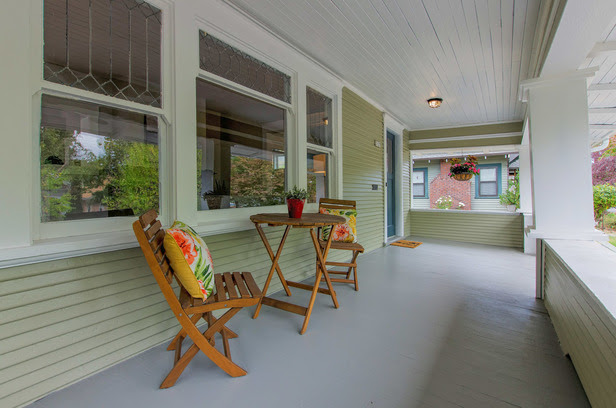 Enjoy lazy days and nights on the large front porch overlooking the beautifully landscaped yard. The cozy living room with fireplace showcases original leaded glass windows. Formal dining room and eat-in kitchen area offer immediate access to large backyard. Two beds & one bath on main, plus finished attic have all been lovingly updated. Many original features have been preserved. The spacious unfinished basement with separate entrance has loads of potential.