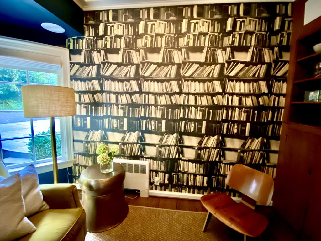 For this week’s installment of my blog series “Check out this wallpaper” I bring to you the wallpaper that instantly turns an ordinary office into a sophisticated library.