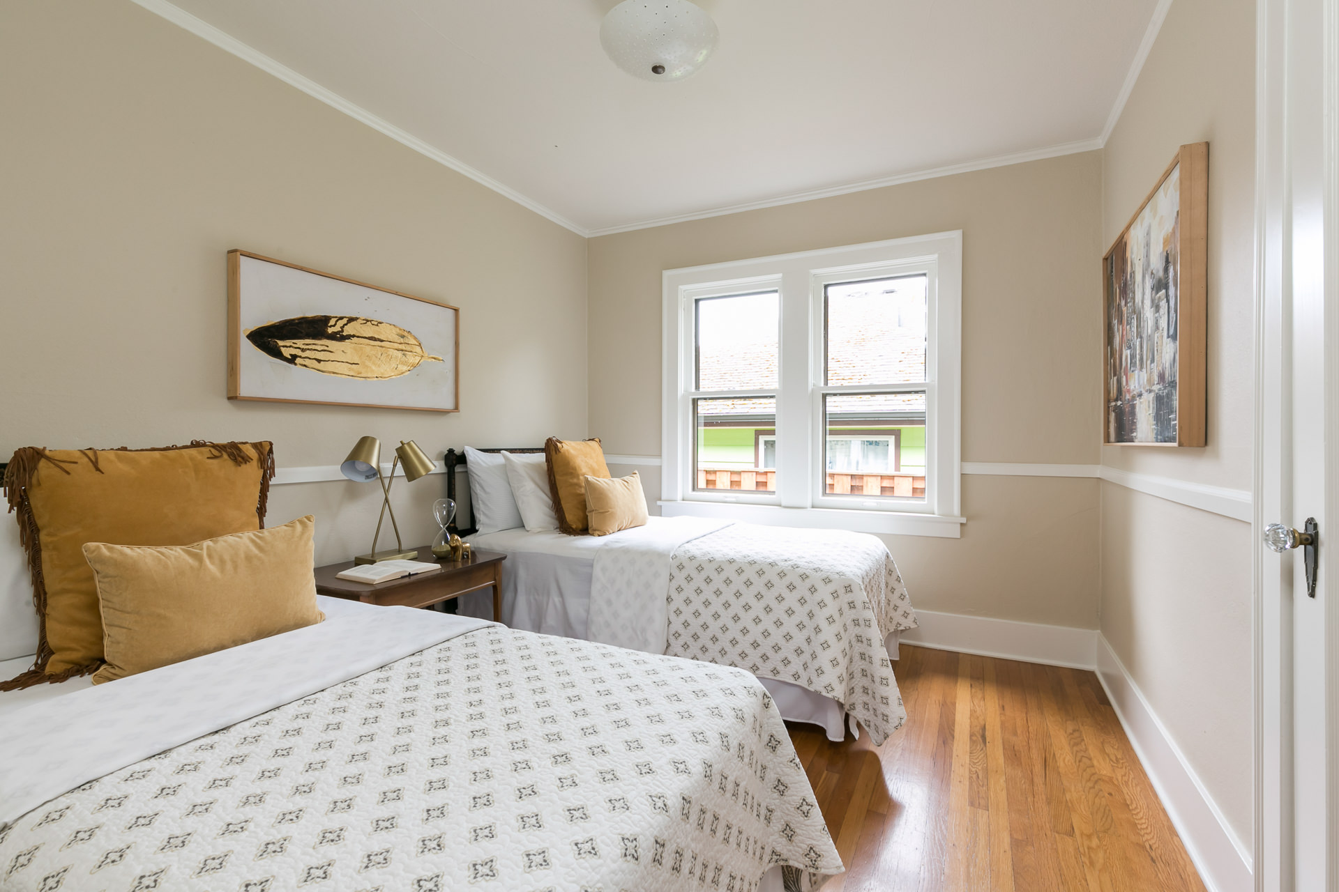This bright and lovely bungalow has been meticulously maintained by the same owner since 1981. It boasts cohesive design throughout and efficient use of space. Two bedrooms on the main floor, a bedroom and office upstairs with a 4th bedroom in the basement. The basement has a separate entrance and may have future potential for an ADU. There is an oversized garage with ample space for projects. Enjoy reading or sipping a glass of wine on the sweet front porch and or privacy on back deck overlooking a lovely perennial garden. The house is within walking distance to Beaumont Village and Hollywood. Your perfect retreat to unwind an relax.