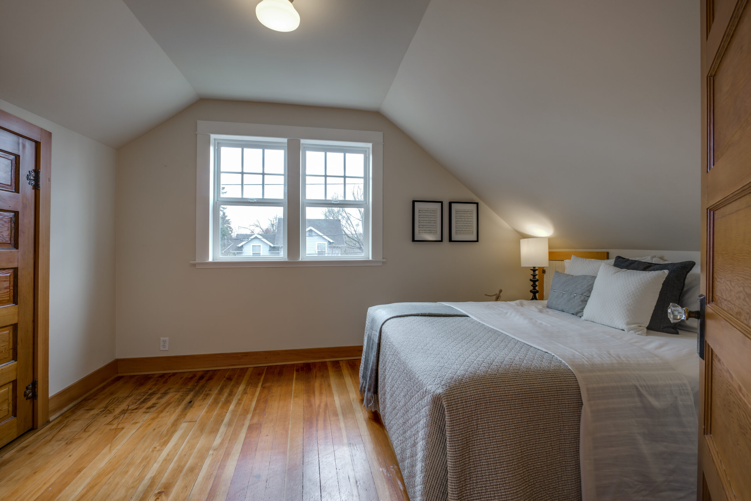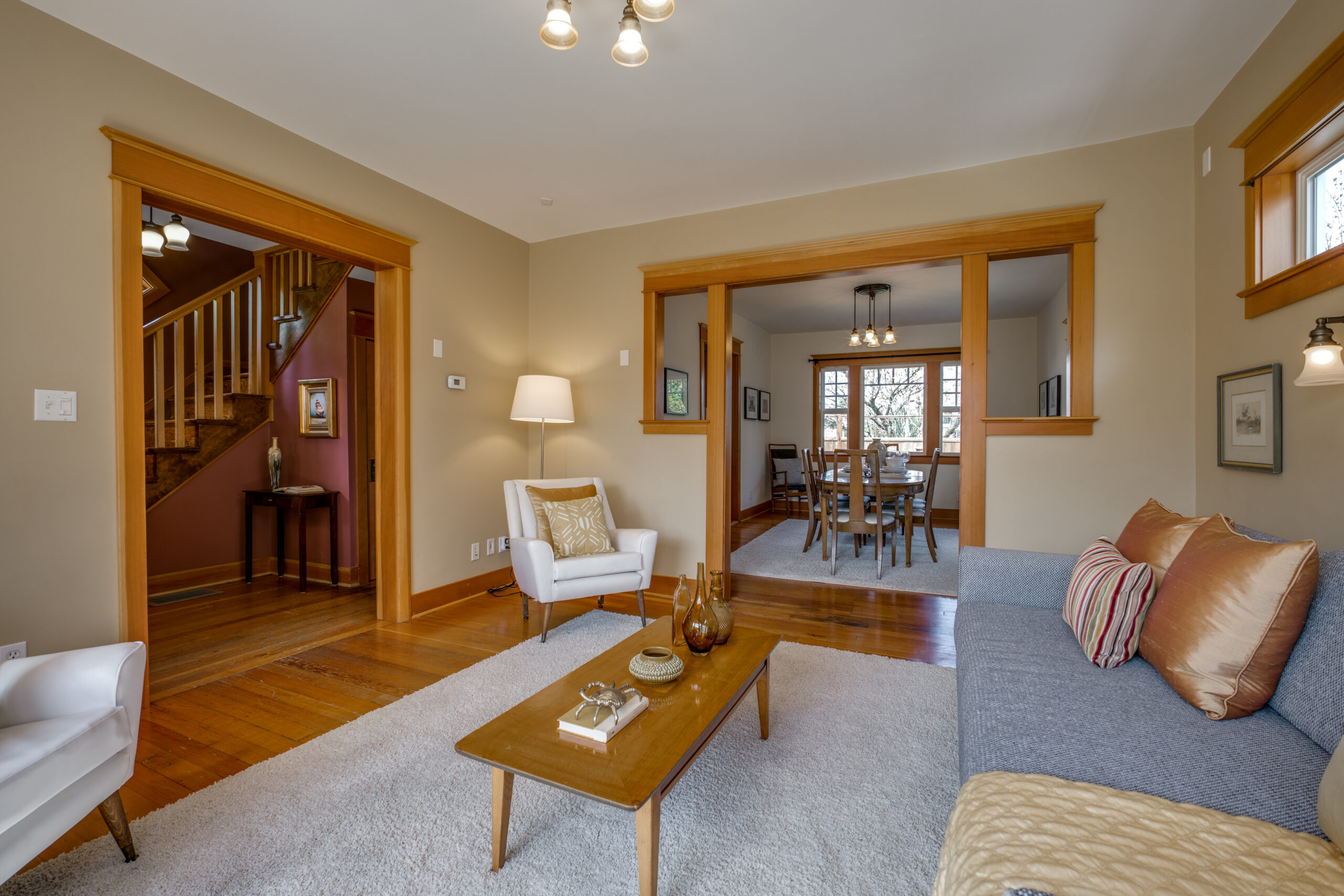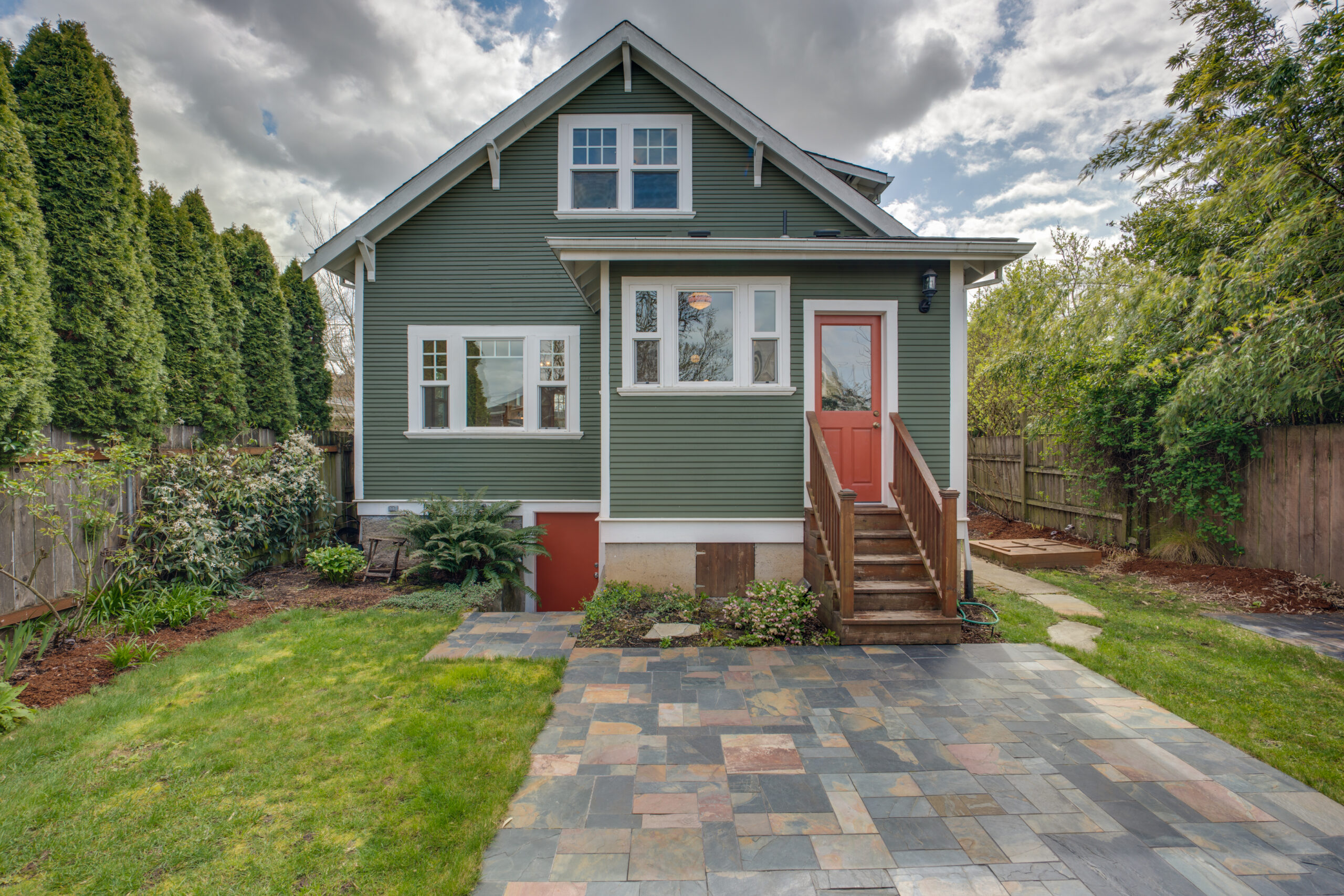 This home will charm you! Moving from the beautiful front garden and across the welcoming front porch, you enter into light-filled and reinvigorated spaces. The living room is enhanced by a large window seat and is wired for your entertainment system. The expansive kitchen features quartz countertops, custom cabinets, tile floor, large farmhouse sink and prep sink. This desirable floorplan has all three bedrooms upstairs adjacent to a gracious bath with separate tub and shower. The fenced backyard is perfect for relaxing with its large slate patio. Live Here! Enjoy the best of NE Portland.
