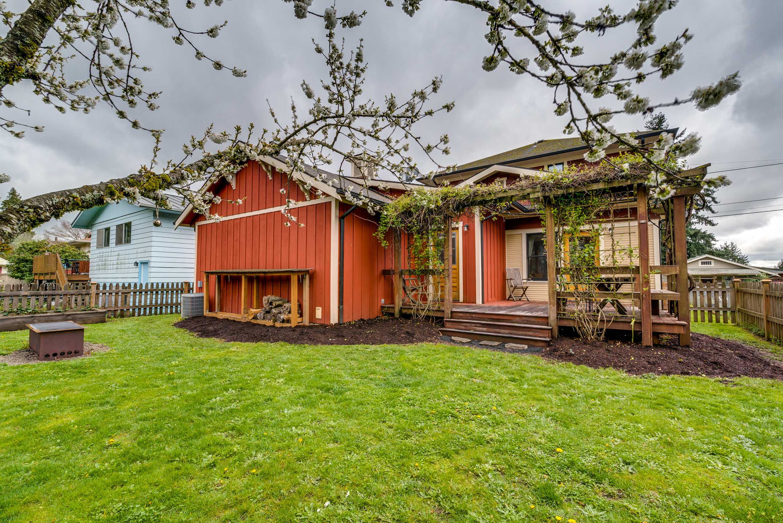 deck, raised beds, and modern steel fire pit. Oversized 1-car garage and Peak-a-boo