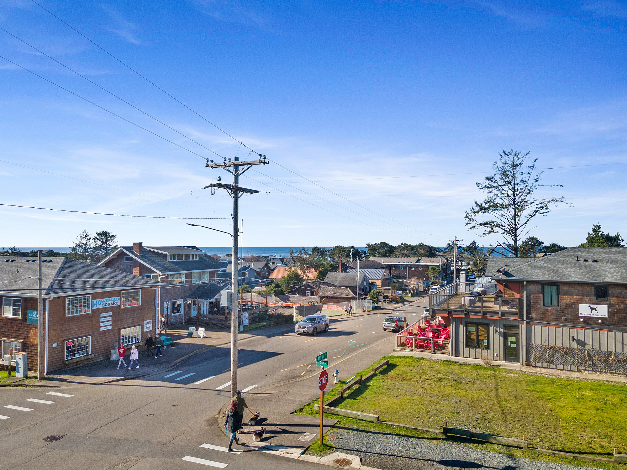 Situated in the vibrant downtown area of Manzanita, this property stands out among the coastal real estate landscape and is yearning for you to bring your ideas. The combination of a single-family home, a double lot of .22 acres, zoned commercial, located on a corner lot with ocean views, and at the peak of the hill before Laneda Ave slopes towards the beach. This property creates a versatile canvas, catering to both residential, commercial, and mixed-use aspirations. The single-story home of 1,599 sq ft not only provides the comfort and convenience of single-level living but also has a basement that is 378 sq ft and attic space to expand for storage and/or improvements. Take advantage of the commercial zoning and not have to wait for a short-term rental permit. Buyers are to complete their due diligence on any improvements needed for a short-term rental. Whether you are seeking a distinctive coastal residence, entrepreneurial opportunities, or a combination of both, this property stands as a testament to the allure of coastal living on the Oregon coast.