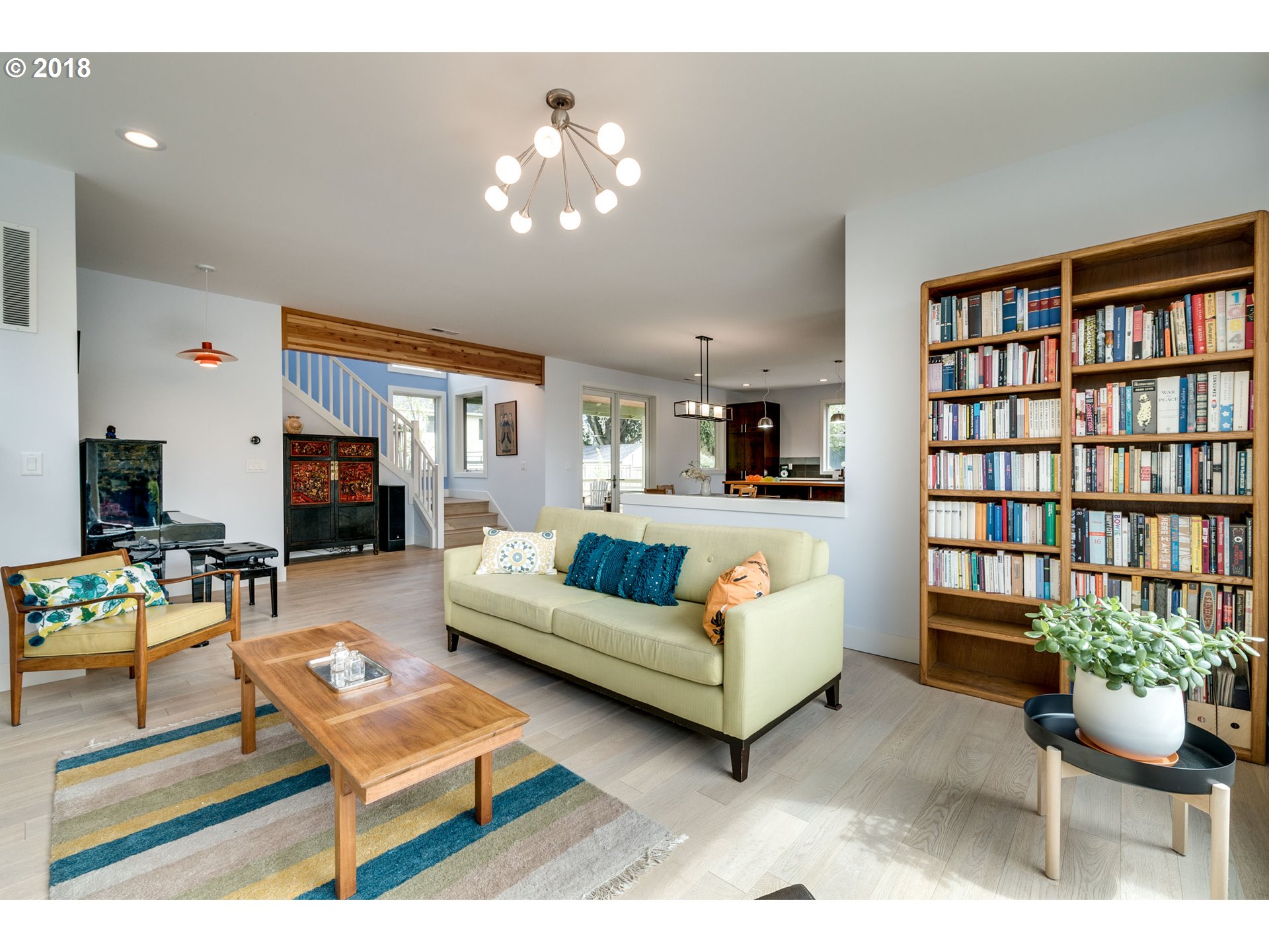 This energy-efficient Earth Advantage certified home features vaulted ceilings, a large chef’s dream kitchen, wood floors, fireplace and views of the West Hills. Abundant light floods all levels with oversized Marvin wood windows and skylights on the upper level. The modern, open floor plan is warm and welcoming. Built in 2017 by Ethan Beck, this bespoke home features custom cabinets throughout, professional grade appliances and French doors that open to a large covered deck overlooking the fenced back yard.