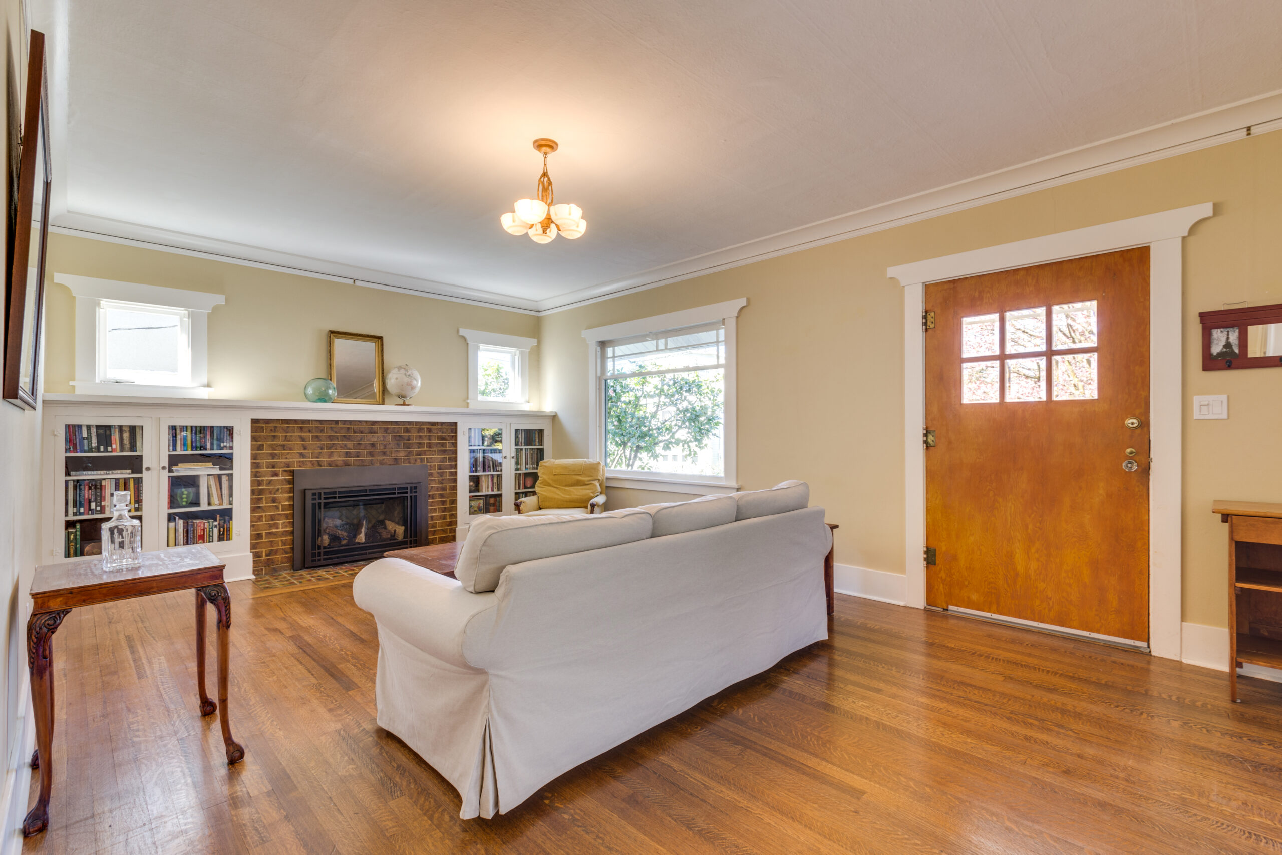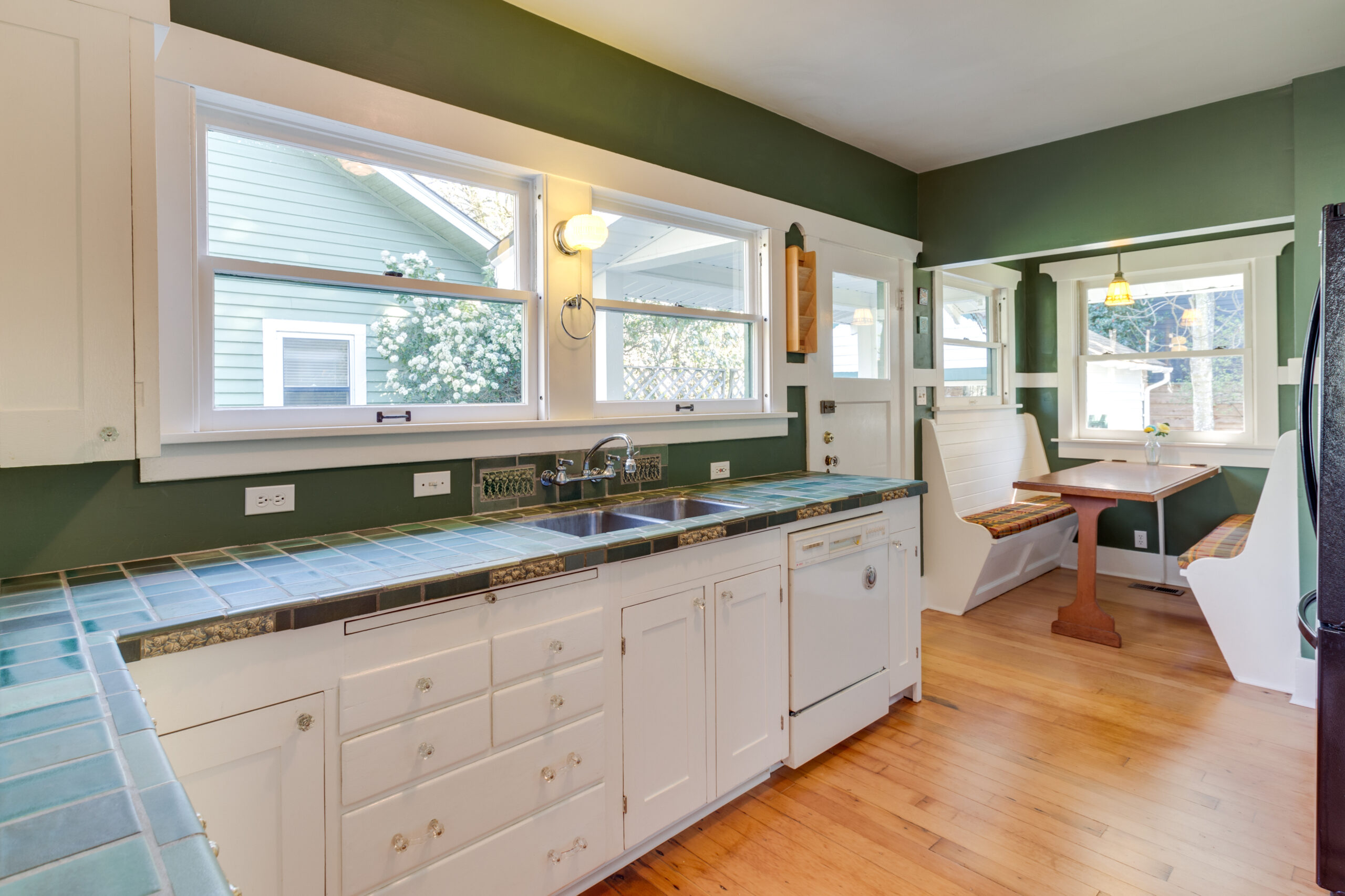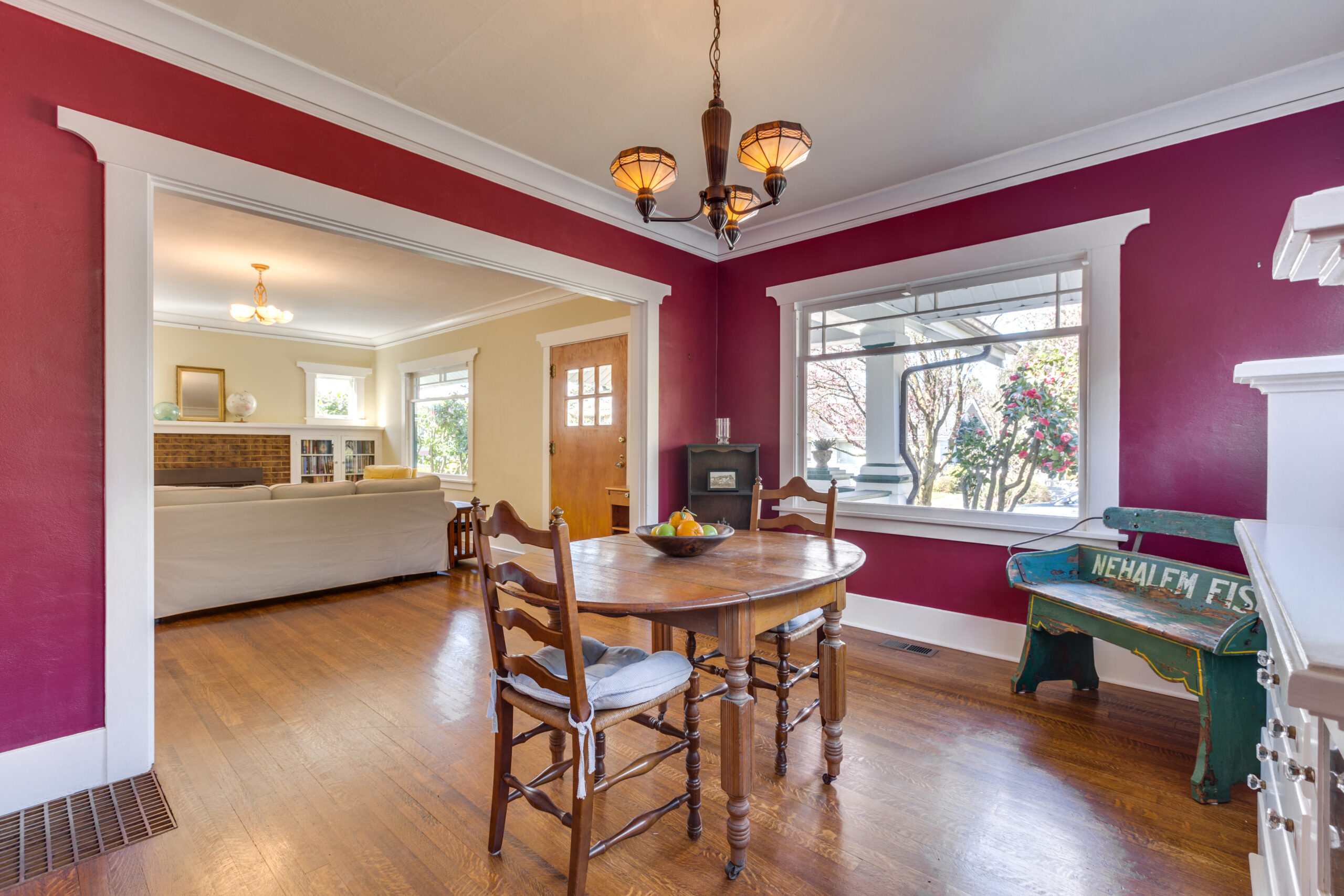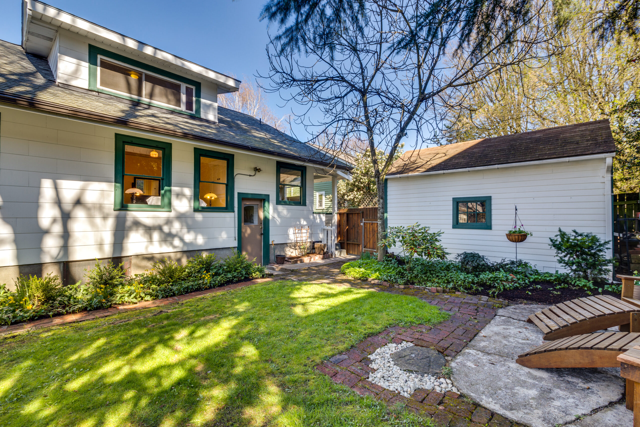 This gorgeous craftsman bungalow in the Laurelhurst neighborhood boasts four bedrooms, two bathrooms, a large landscaped front yard, and a perfect front porch. Built in 1923, this home has been lovingly maintained and updated so its history is apparent from the moment you step through the front door. A beautiful traditional Craftsman-style fireplace greets you in the living room, flanked on both sides by custom built-ins and accent windows. Hardwood floors, high ceilings, and a large picture window let in and make the most of this room’s impressive amount of sunlight. Next to the living room you’ll find an adjoining formal dining room, also showcasing period details, such as custom built-ins and moldings. The kitchen features a lovely window breakfast nook, a custom green tile counter and back splash, stainless appliances, and a built-in pantry. The windows are the spotlight in each of the bedrooms, with their beautiful wood trim and sunny views. Original built-ins throughout are a functional reminder of the home’s historic charm and personality. You’ll love the claw foot tubs in both the upper and lower bathrooms. The detached single-car garage and large basement are perfect for additional storage. The lush backyard is an outdoor enthusiast’s dream, with manicured landscaping, lots of seating areas and natural beauty everywhere you look. Located in one of the hottest Portland neighborhoods minutes to New Seasons, La Provence, Gravy, with quick access to I-84 and I-5, a Walkscore of 85 and highly rated schools!