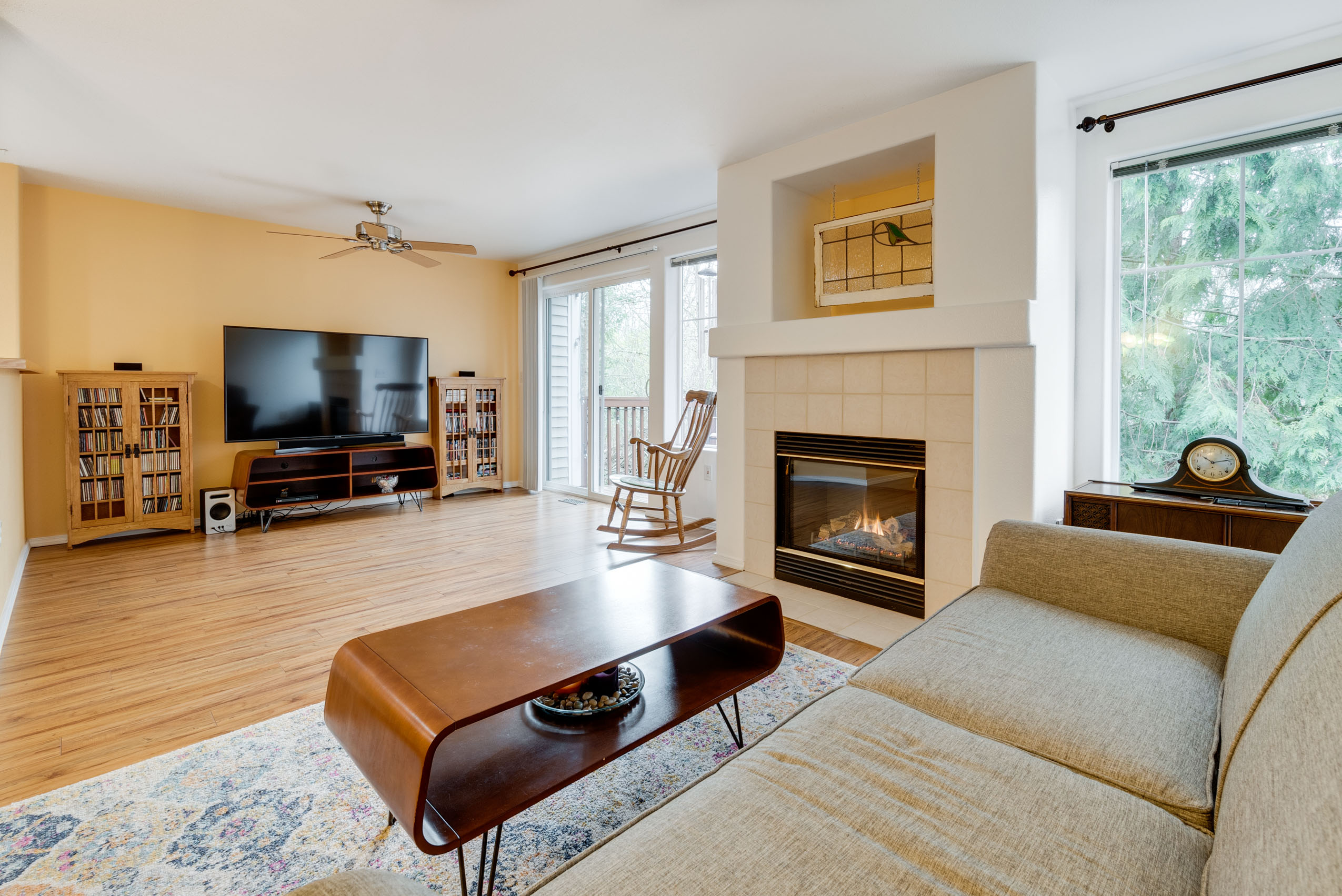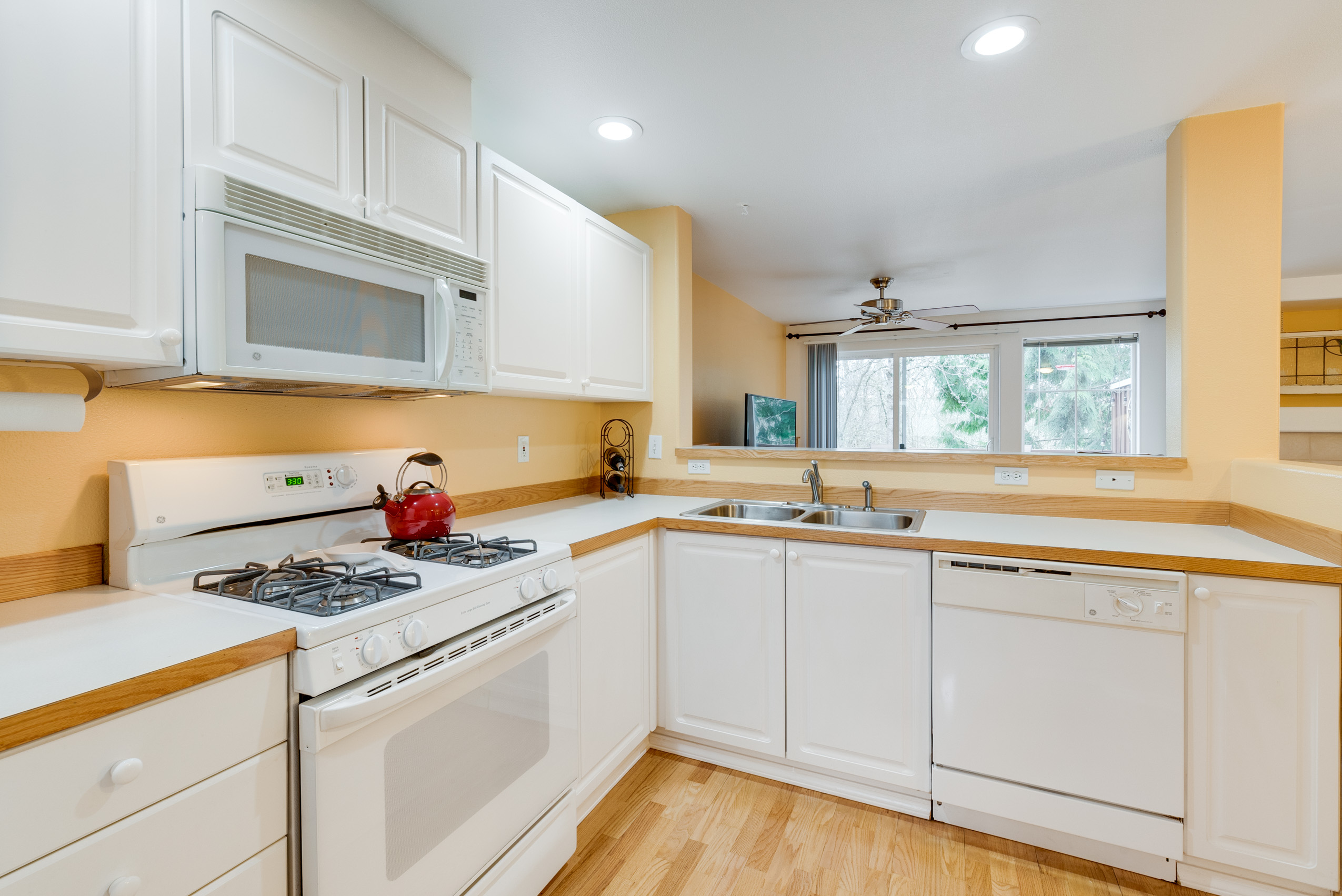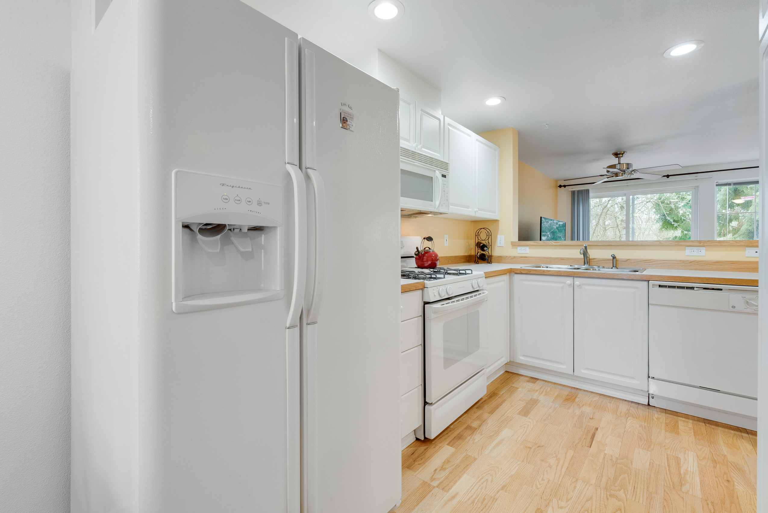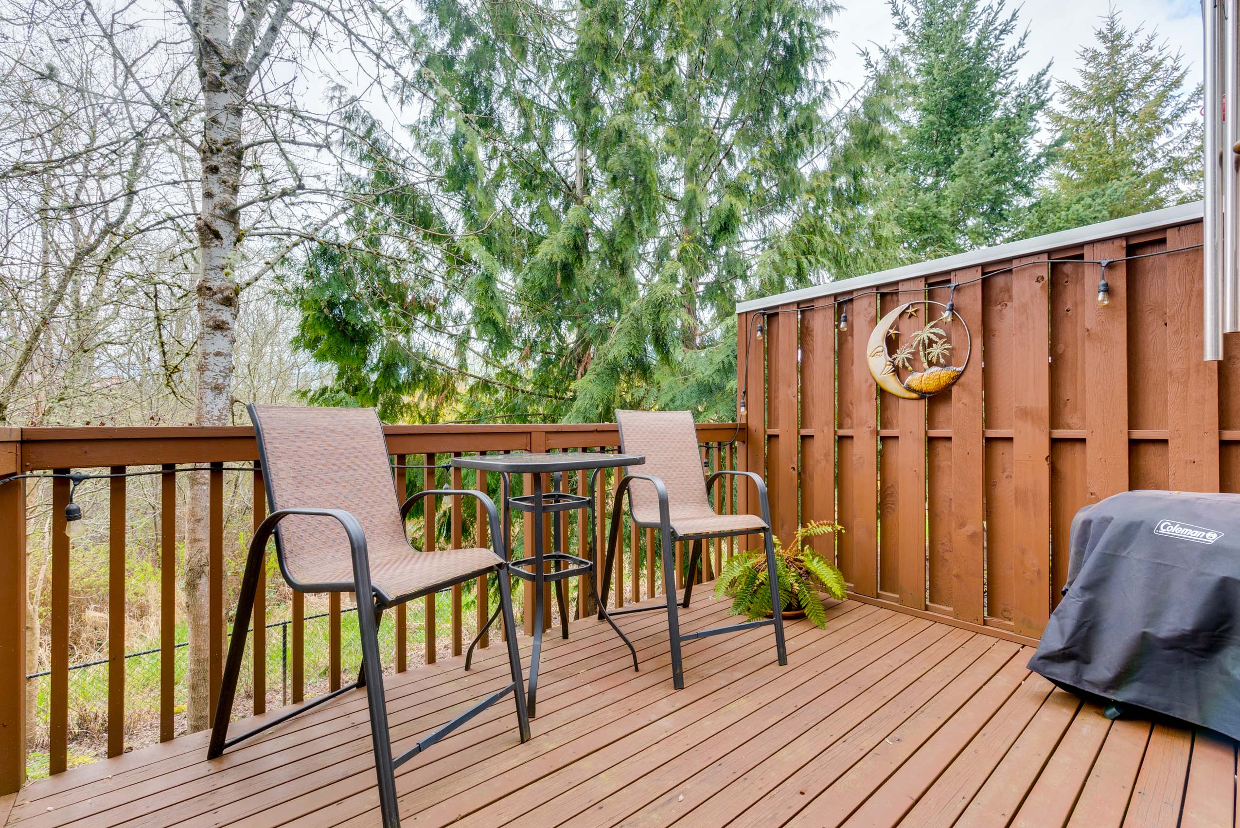 Rare greenspace view with nature at your doorstep and cheerful living space! Easy-going, low maintenance lifestyle with cozy gas fireplace, hardwood floors, attached garage and master suite with walk-in closet. Private deck connects you to tranquil views of Tualatin Hills Nature Park where you can hike and bike. All under a brand new roof just a short commute to Nike, MAX, Tech Corridor & Downtown Portland. Pre-Inspected, all appliances included, strong HOA, & no rental cap. Find yourself here!