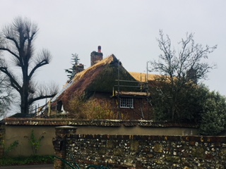 After tidying up, and gathering my wits, I wandered into the pub for a Scotch Whiskey and a chat. Though I was hoping to sit at the bar to make merry with all the old-timers I’d previously entertained with my sass-itude, the bar maid motioned me to a wing chair in the dining area, close enough to view but not close enough to engage with the ‘regulars’. It felt like I was being delegated to the ladies area by a pre-war rule of feminine modesty. Nonetheless, sitting alone in my wingback chair with a glass of decent highland peat whiskey, I made do with my contrastingly boring phone and moderate wifi signal. Alas, finally one of the gents, his curiosity getting the best of himself, came over to ask me my purpose in Dorset. I said to him, “I’m from Hamilton Eavestrough repairs and here for the vernacular architecture in general and in Dorset for the thatched roofs specifically.” He perked up and smiled, pointed to the men on the bar stools and said, “Well Tony over there is a Thatcher, you’re in luck.”