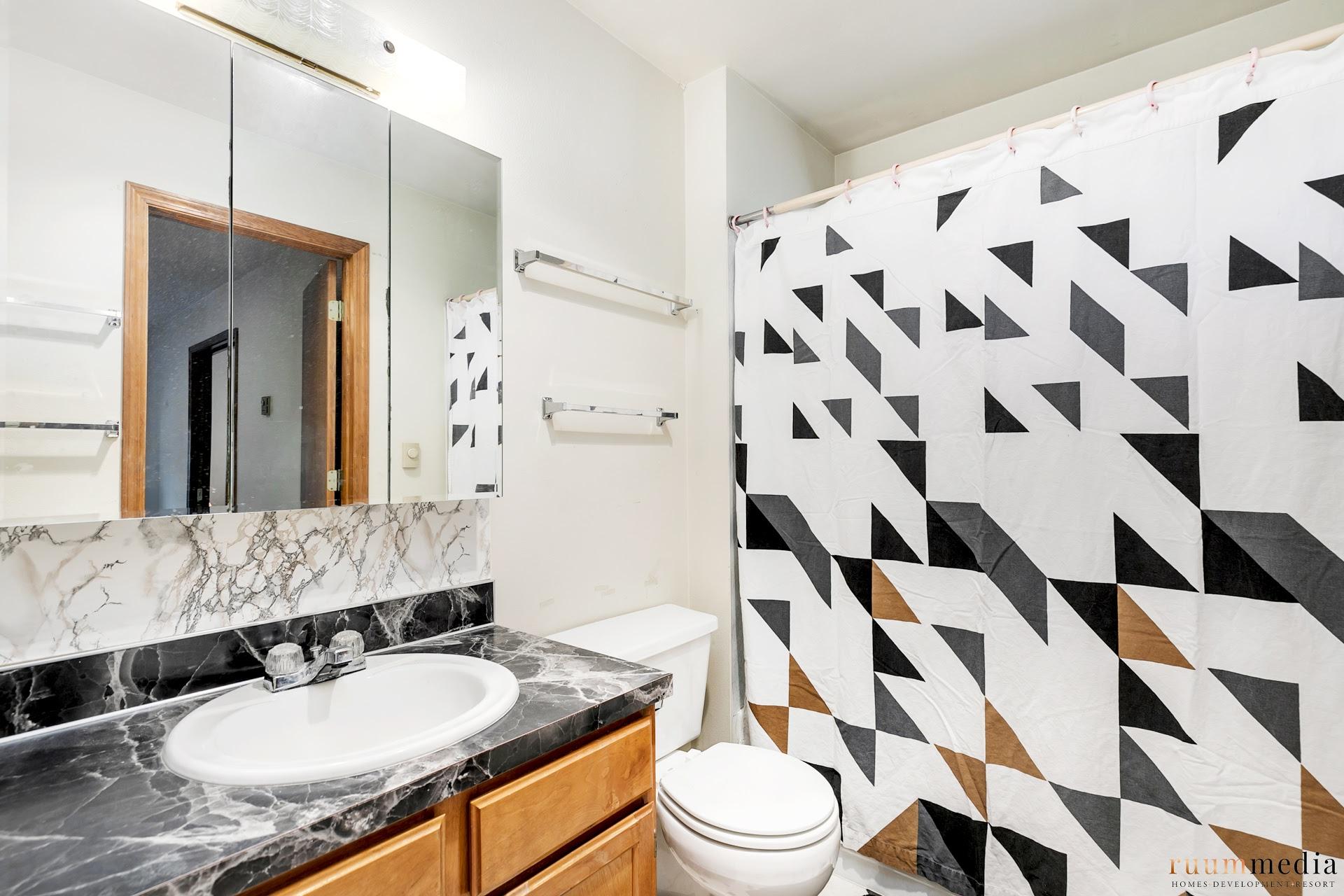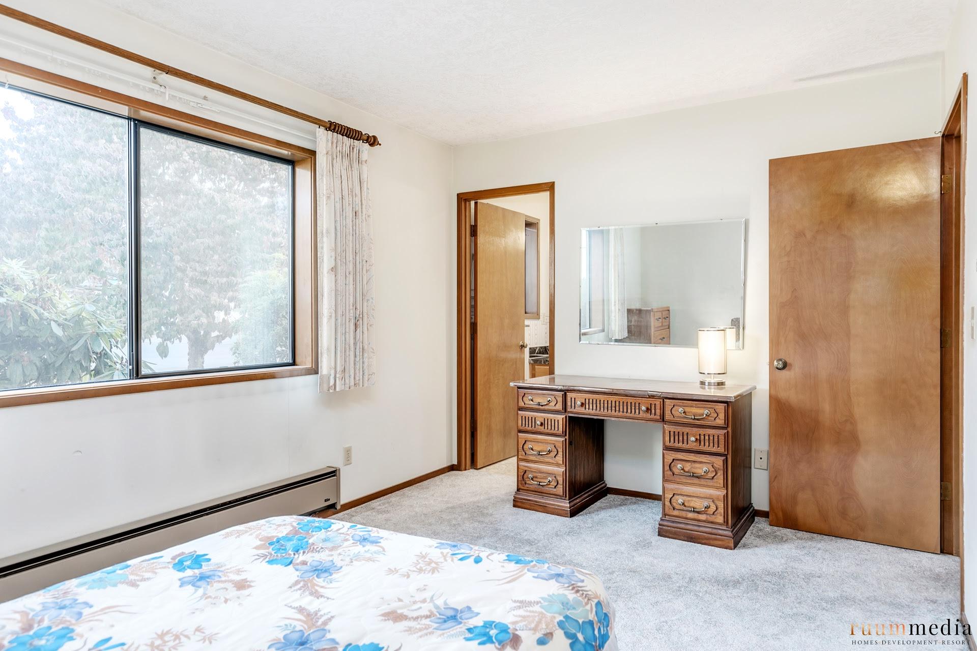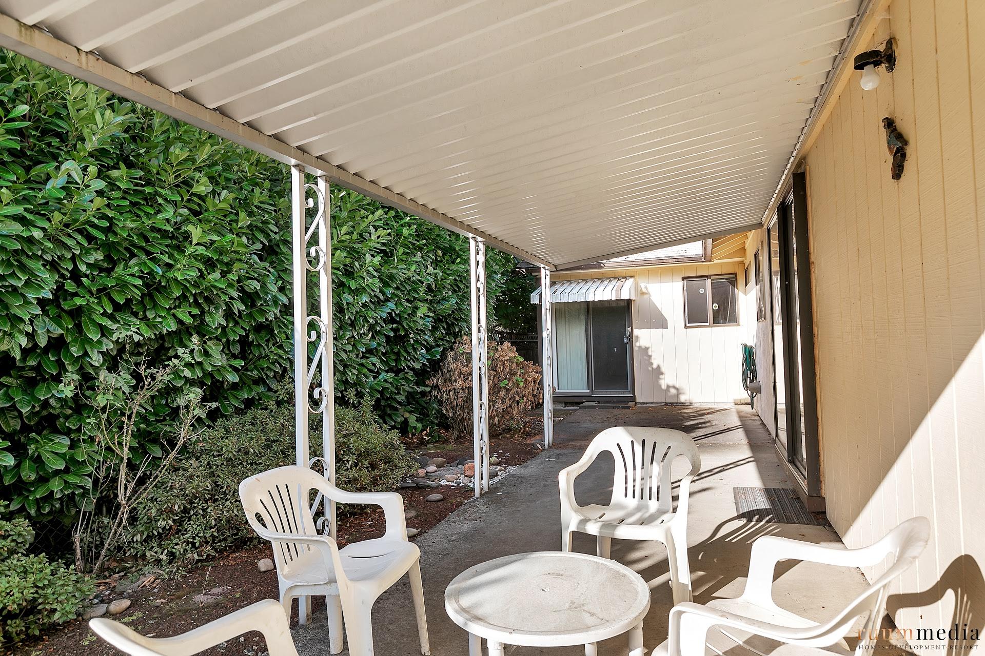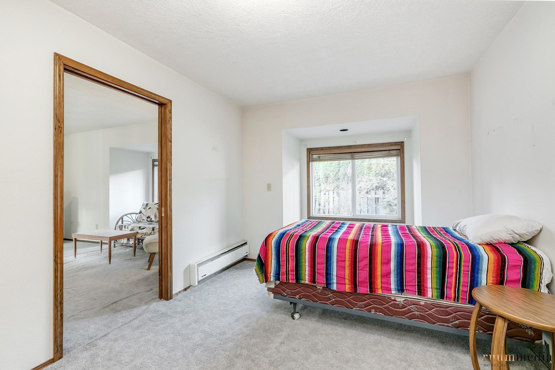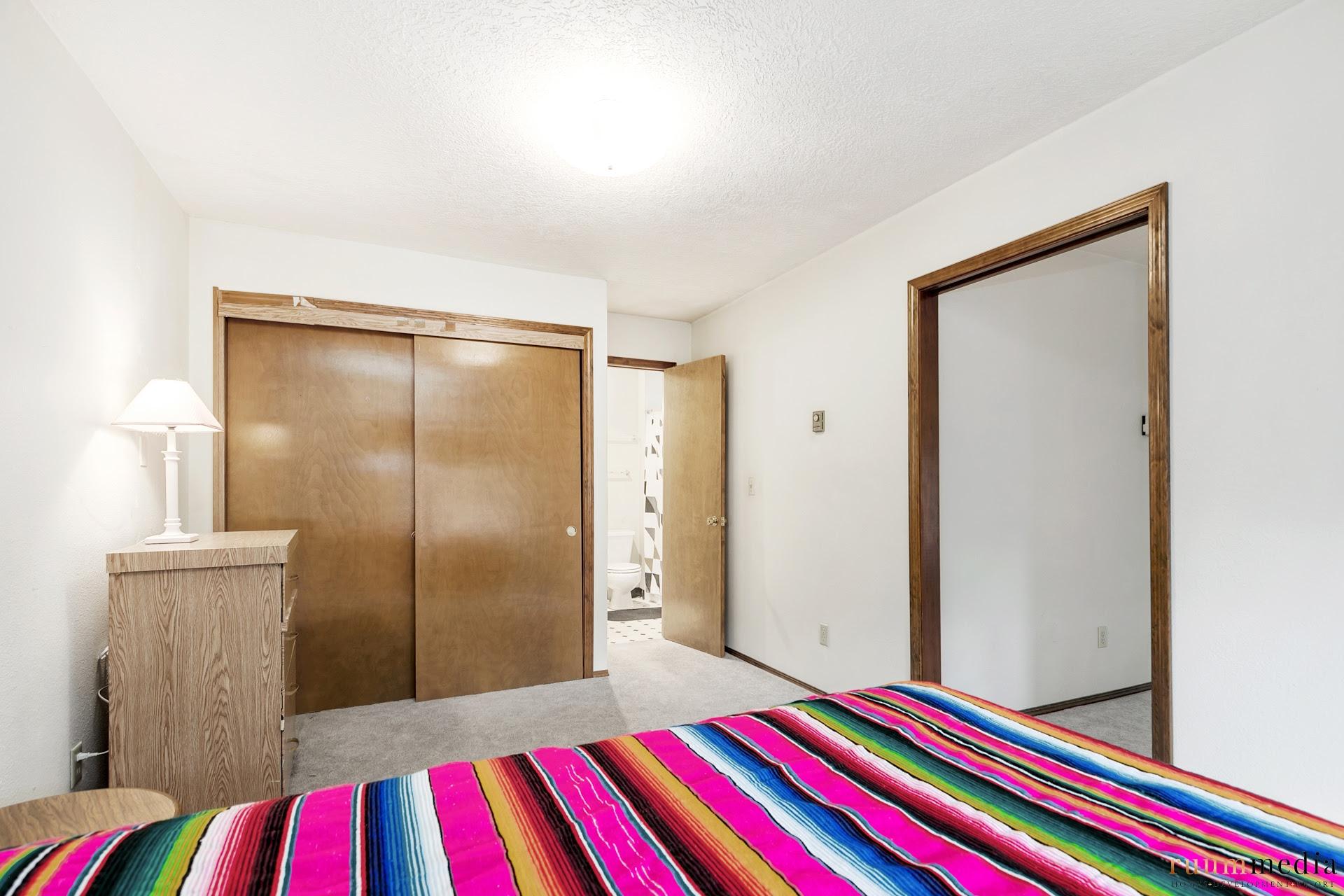 Second bedroom and second bath can be locked off to be it’s own wing. With access to the large family room that has bonus area with nook and kitchenette. Think Airbnb/roomie potential or big third bedroom in this space! There are two sliding glass doors to the private back patio.