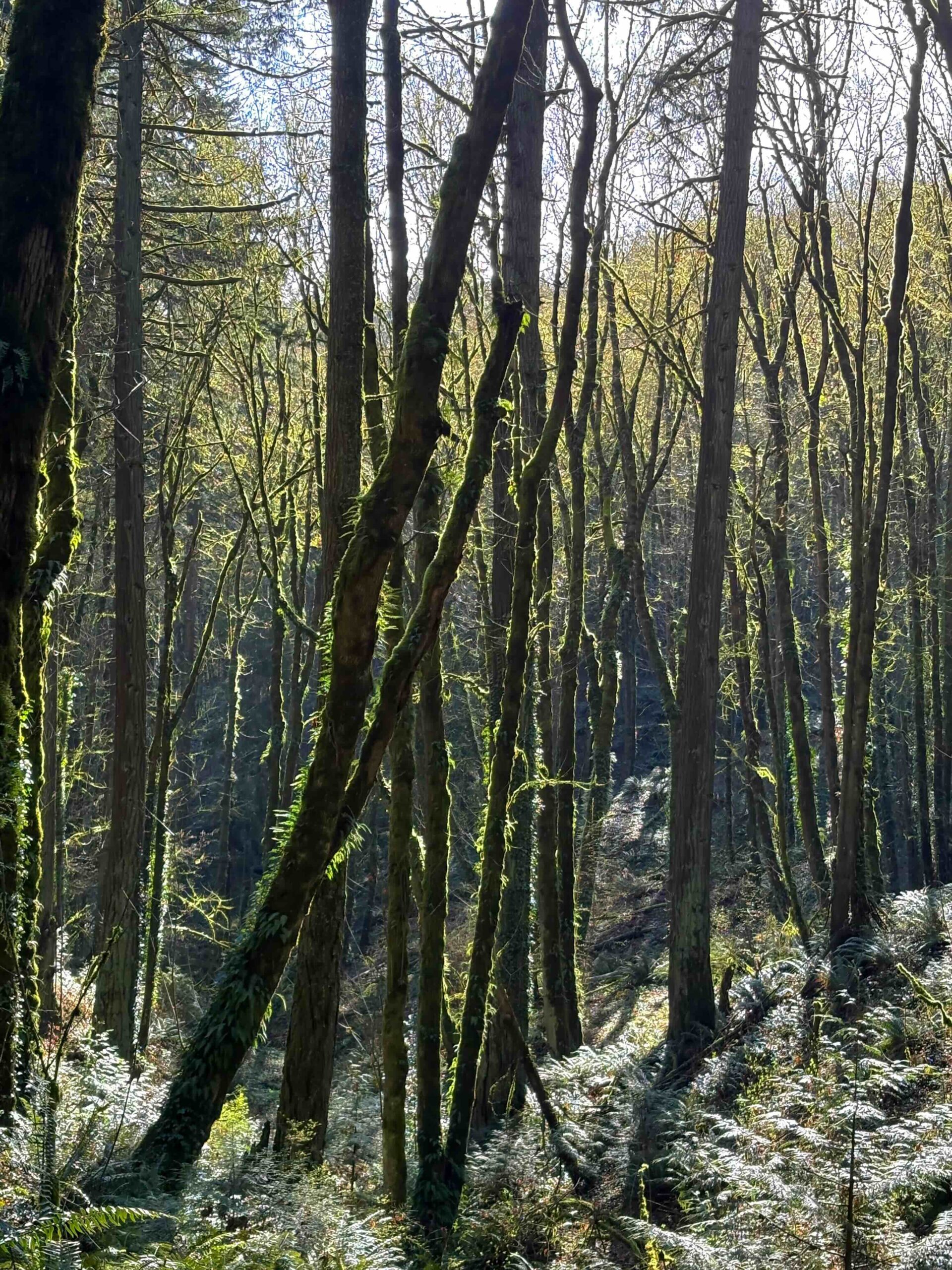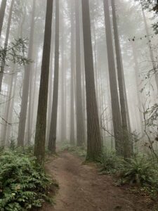 If you find the size intimidating, an easy place to begin exploring is the Lower Macleay Trail, a well traveled path with a parking area which runs along Balch Creek. Portlanders are familiar with the Witch’s Castle, an abandoned stone structure about .8 miles into the trail, and the path leads up to the Bird Alliance of Oregon (formerly Audubon Society). This is a separate natural area with a visitor center and 4 miles of trails on 172 acres. (I saw an elk there on a rainy day, and there is a bird rescue facility, too)