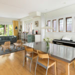 The main house contains two bedrooms and one and a half baths, built-ins, a loft office/library, updated cook’s kitchen with new tile floor, and a new roof. Add to that a detached 912 square foot, two-story, light-filled ADU with one bedroom, a spa-like, floor to ceiling tiled bathroom, and garage. And all of this in the beating heart of happening Hawthorne!