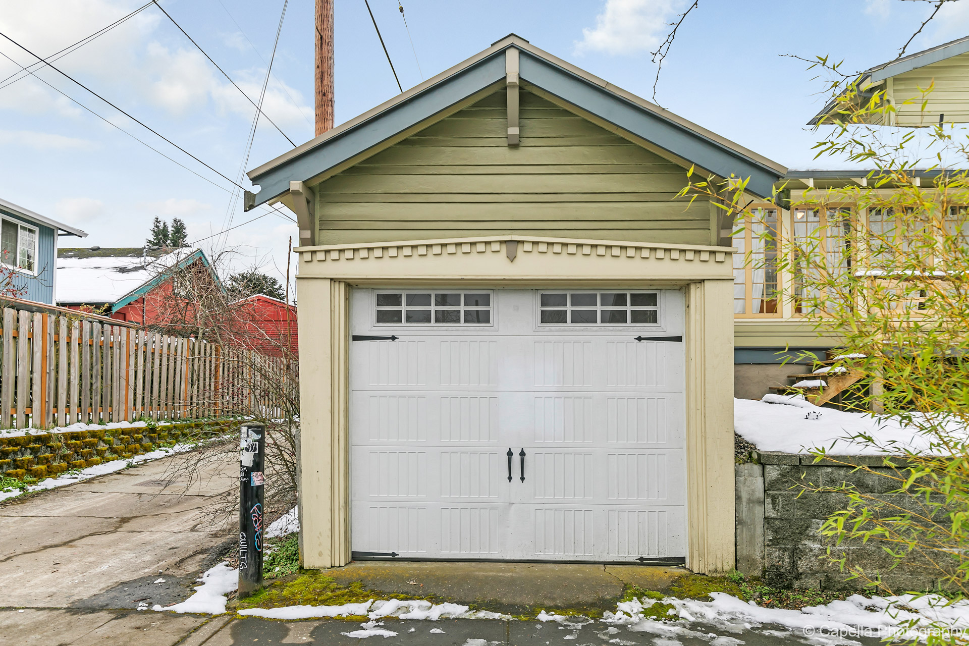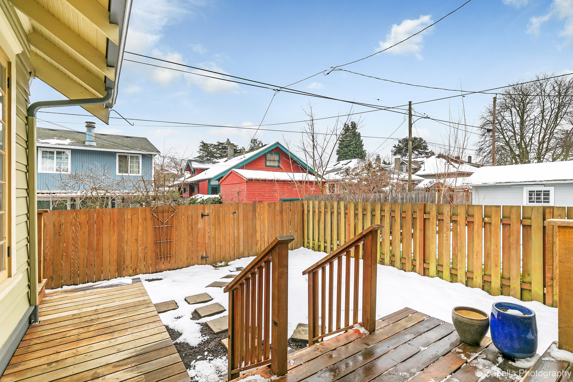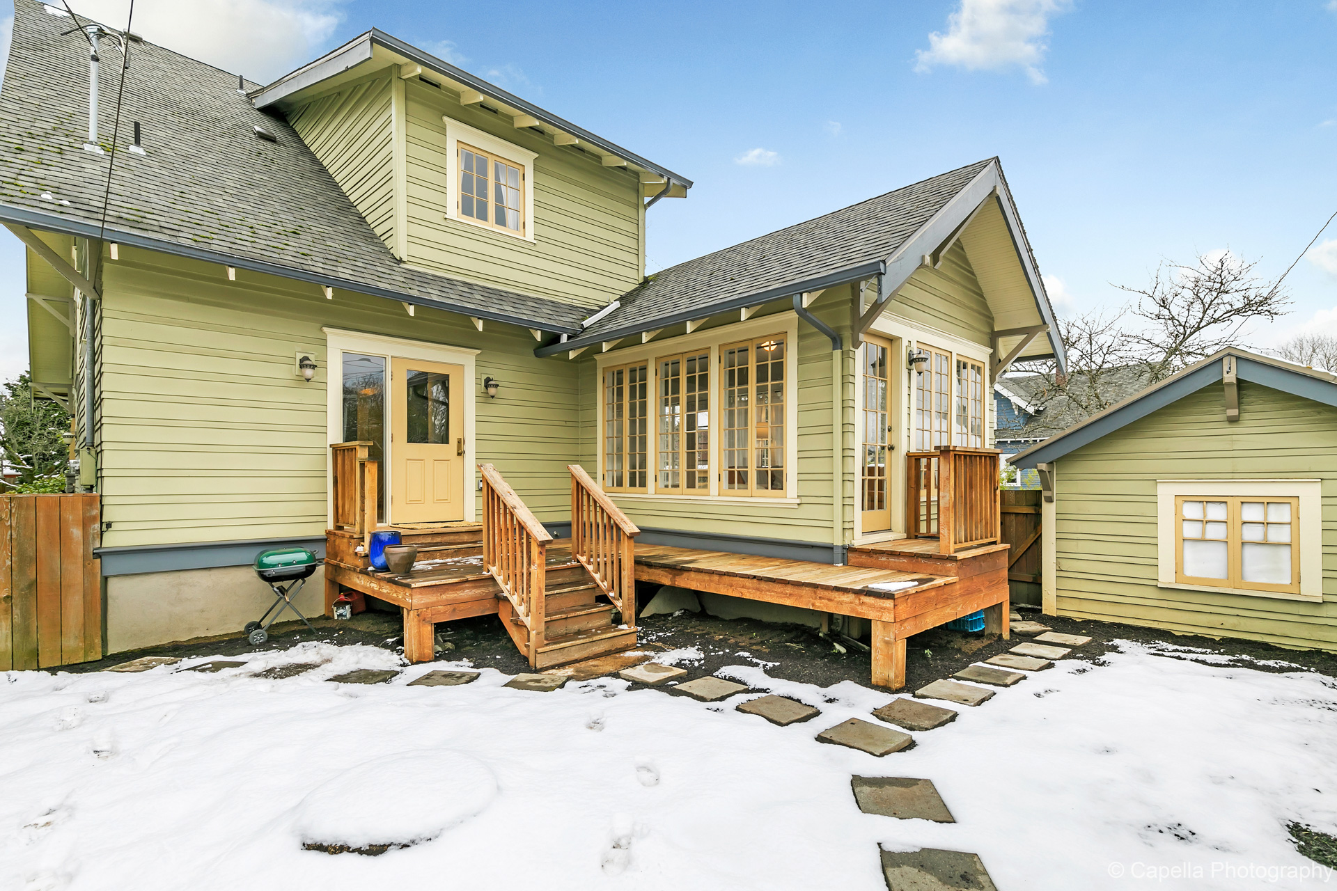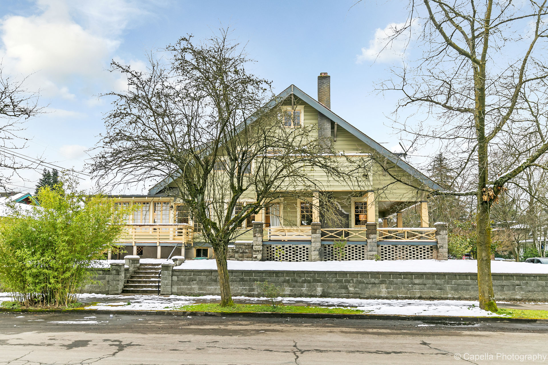 Elegant and stately craftsman that sits elegantly perched above the street. As you approach the home on the nice wide stairs you are greeted by the gorgeous wrap around porch, perfect for summer nights sipping cocktails as the sun sets. As you enter the light filled foyer, you are able to see through the house to the back yard. To the left is formal living area has the most interesting and beautiful fireplace. Just beyond the living room is the enormous and light formal dining with coffered ceilings and generous built-in. Formal dining room opens beautifully into the large chef’s kitchen completely updated with newer cabinets, solid surface counters, double ovens + cooktop island. Dining room also opens to the large sunroom with is fully flanked by windows on 3 sides. There are dual stairs cases (one front and one back) that can lead up to the upper level where you will find the expansive Master bedroom with built in bench seating, multiple closets and a sitting rooms. Large second bedroom has a balcony for enjoying sweet morning watching the sunrise while sipping coffee and a nice sized walk -in closet. The third bedroom has vaulted ceilings and walk in closet also. One the third level is the 4th bedroom/office. It is the perfect little getaway for a TV room, kid play/learning center or reading room. Full basement (unfinished) is nice and dry and ready for all your storable items. Private, fenced back yard with deck area for grilling. Single detached garage (could possibly be ADU). All situated on a great corner lot, just 1 block N of Killingsworth and all it has to offer and less than 1 mile to Mississippi/Williams/Alberta.