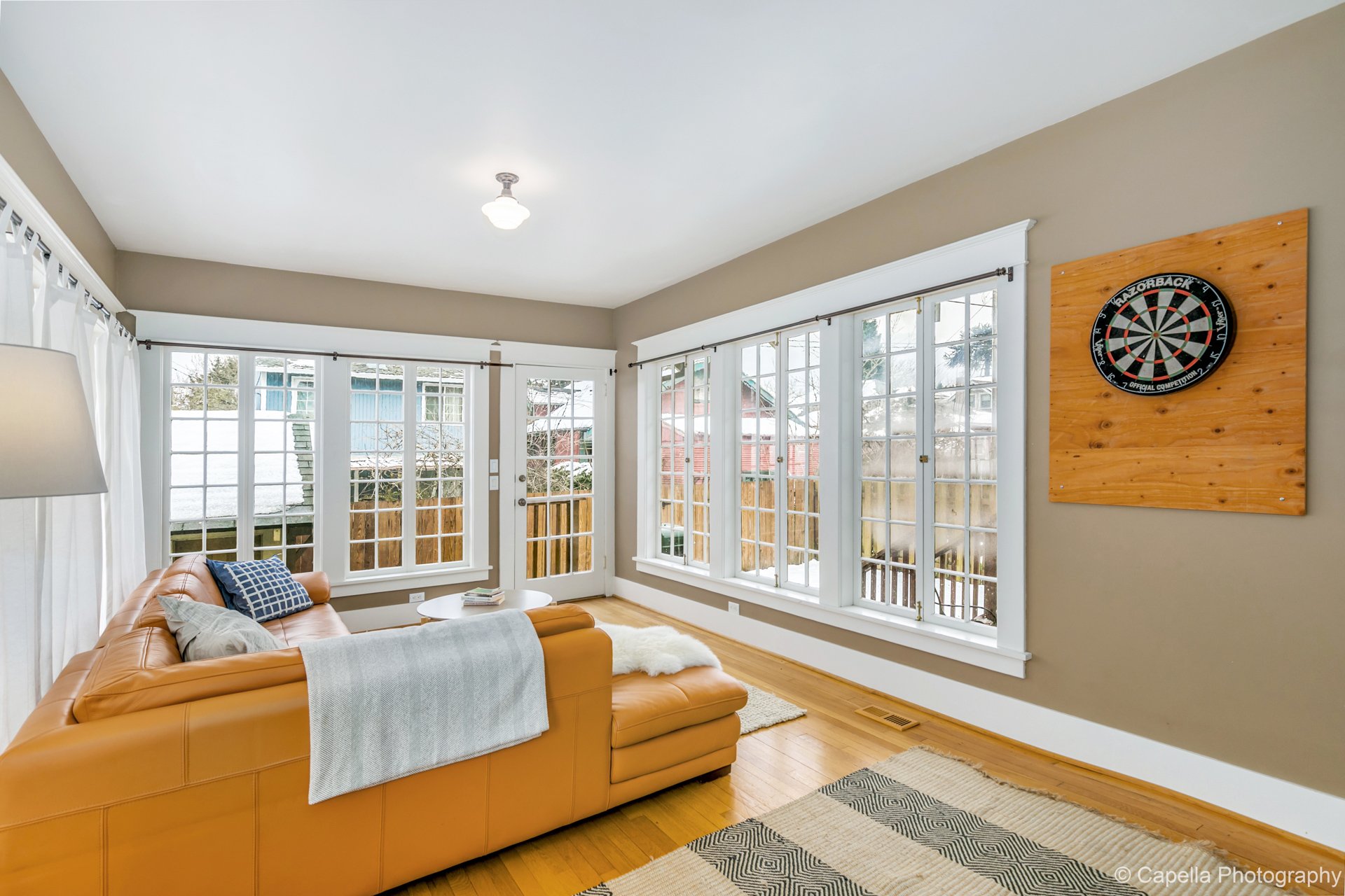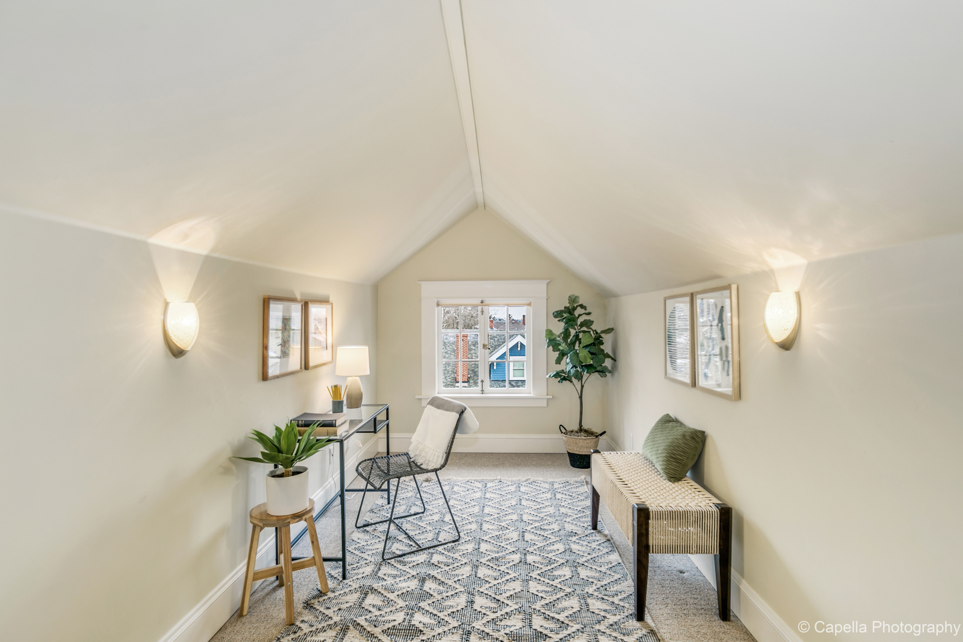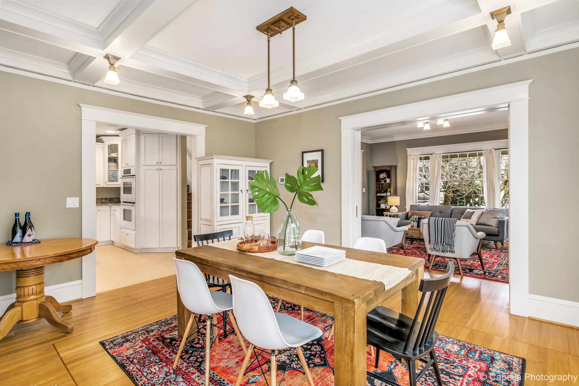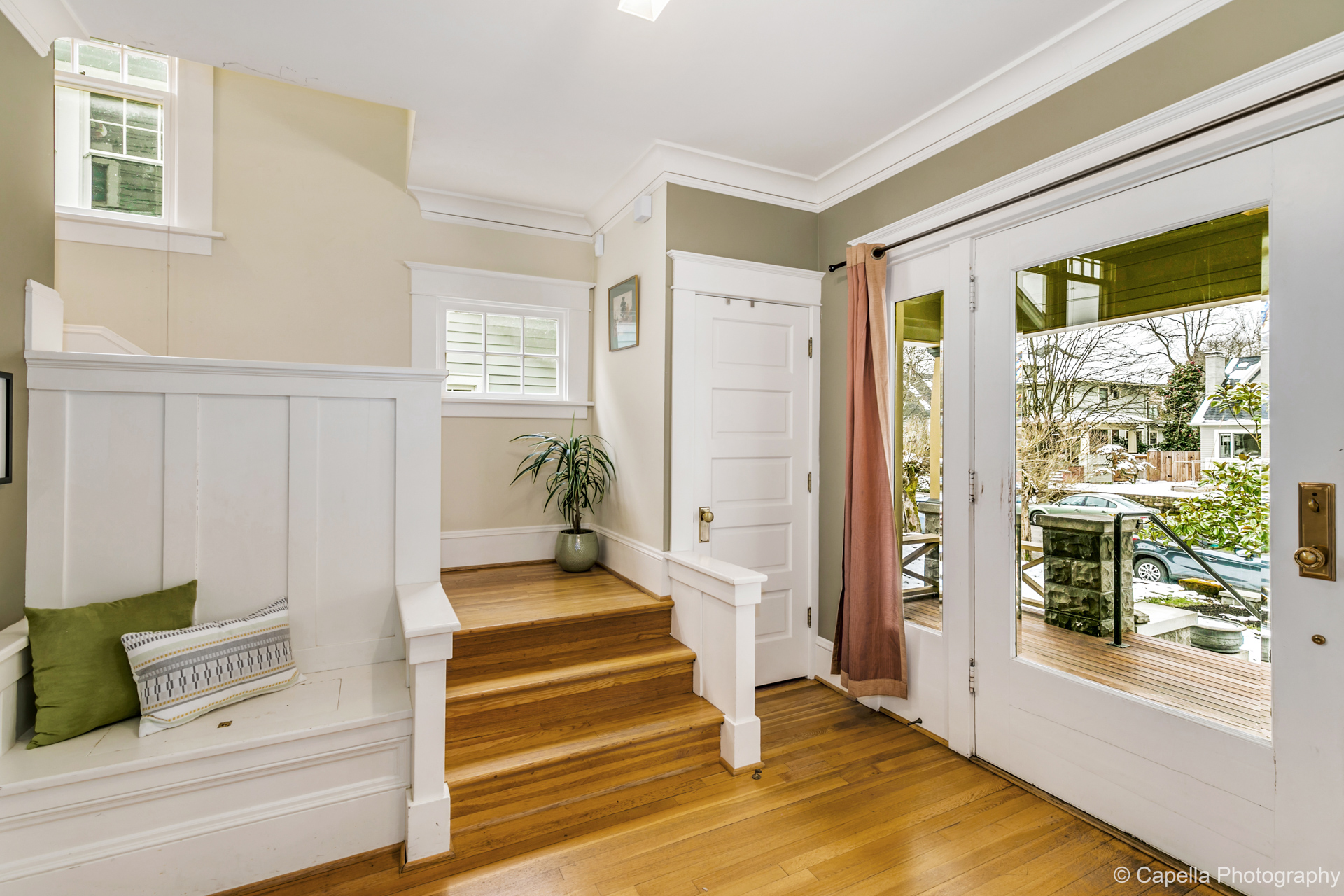 Elegant and stately craftsman that sits elegantly perched above the street. As you approach the home on the nice wide stairs you are greeted by the gorgeous wrap around porch, perfect for summer nights sipping cocktails as the sun sets. As you enter the light filled foyer, you are able to see through the house to the back yard. To the left is formal living area has the most interesting and beautiful fireplace. Just beyond the living room is the enormous and light formal dining with coffered ceilings and generous built-in. Formal dining room opens beautifully into the large chef’s kitchen completely updated with newer cabinets, solid surface counters, double ovens + cooktop island. Dining room also opens to the large sunroom with is fully flanked by windows on 3 sides. There are dual stairs cases (one front and one back) that can lead up to the upper level where you will find the expansive Master bedroom with built in bench seating, multiple closets and a sitting rooms. Large second bedroom has a balcony for enjoying sweet morning watching the sunrise while sipping coffee and a nice sized walk -in closet. The third bedroom has vaulted ceilings and walk in closet also. One the third level is the 4th bedroom/office. It is the perfect little getaway for a TV room, kid play/learning center or reading room. Full basement (unfinished) is nice and dry and ready for all your storable items. Private, fenced back yard with deck area for grilling. Single detached garage (could possibly be ADU). All situated on a great corner lot, just 1 block N of Killingsworth and all it has to offer and less than 1 mile to Mississippi/Williams/Alberta.