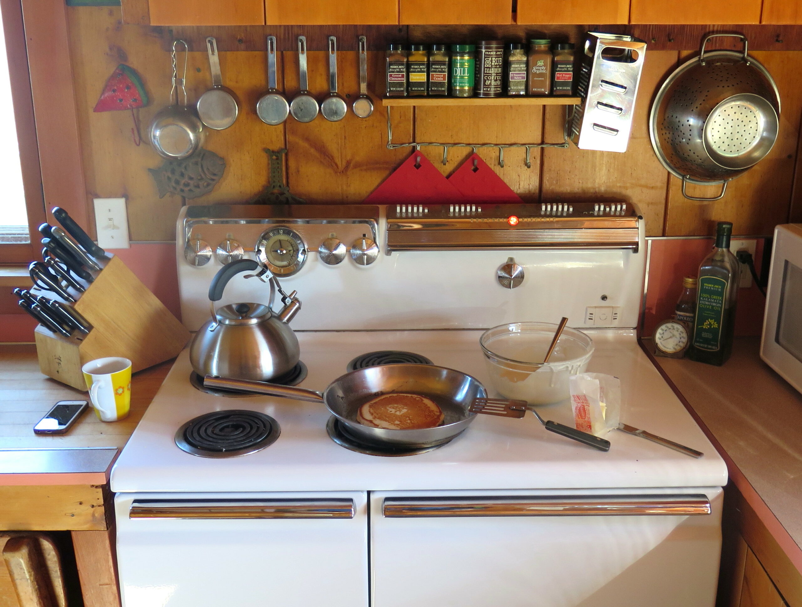 While the landscape around the structure is breathtakingly beautiful, it is the collections inside this home that make complete sense to me. Curled kelp, glass floats, oil paintings of black mountains w/ pink reflections, carpets of ripe colors, speckled floors, wash basins bare of tile, lights with pull cords, Marlite plastic bathroom paneling and a drawer with 7 decks of cards and a handful of white candles.