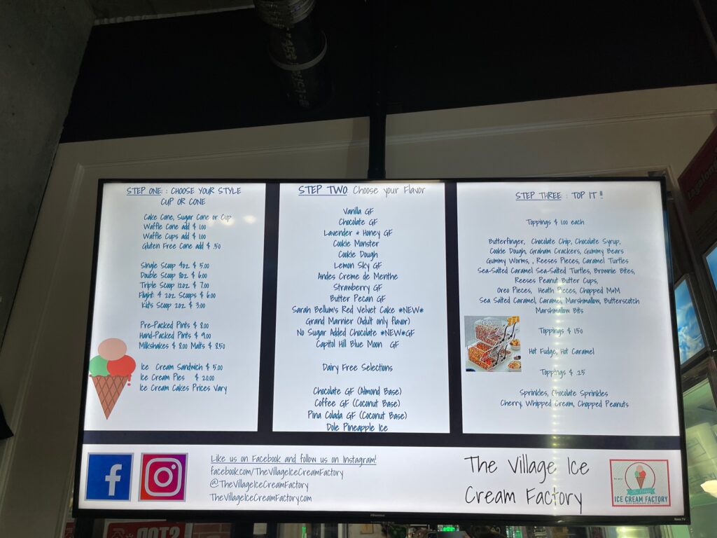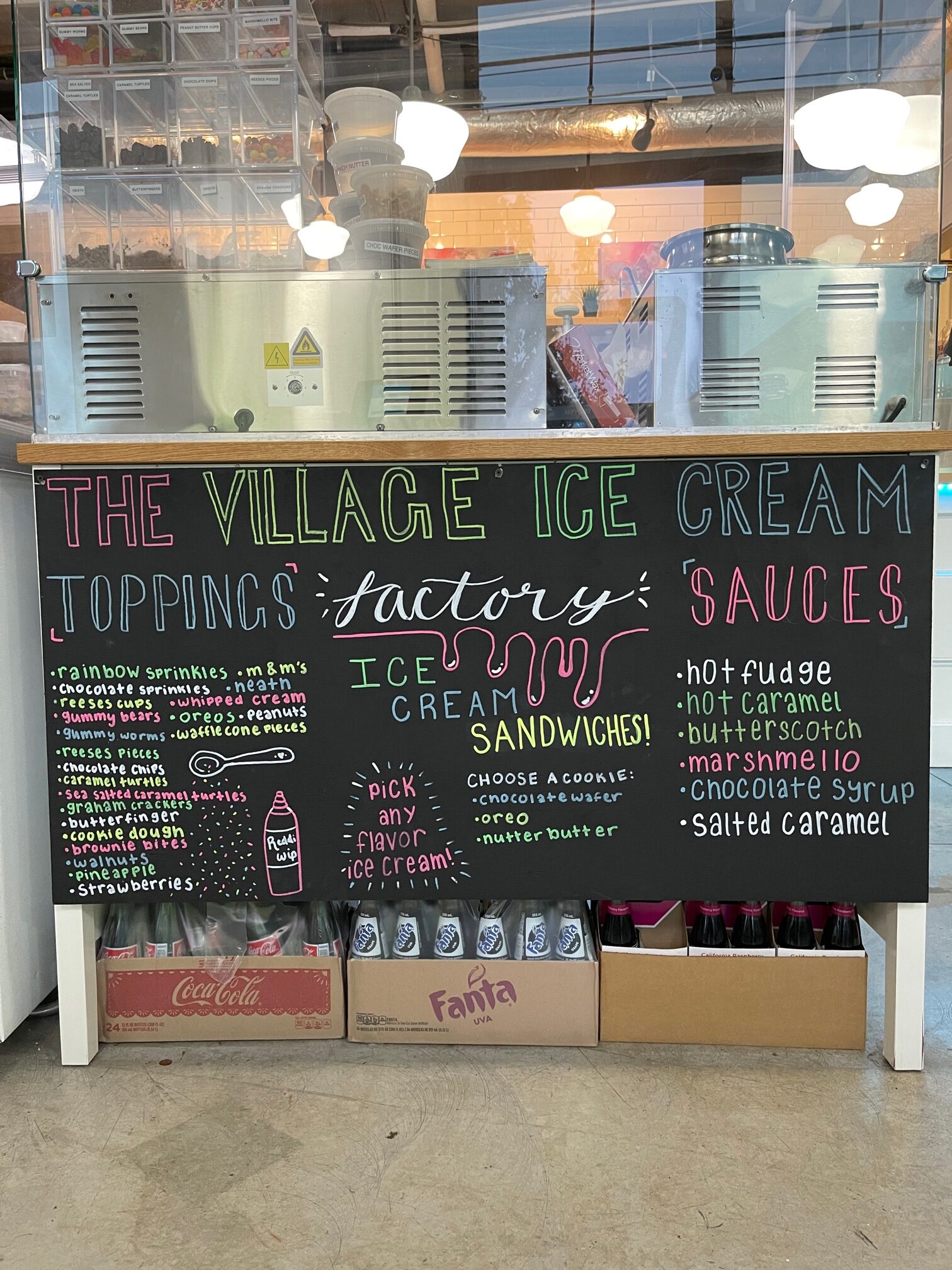 PSA! The Village Ice Cream Factory is a must-try! This spot has quickly become one of my favorites for multiple reasons. Not only is it a fun place to visit for their mix of old and new ice cream parlor vibes, but the ice cream itself is absolutely delicious. The Village Ice Cream Factory goes above and beyond in this neighborhood, keeping our pallets excited with rotating flavors so you can always try something new. For my fellow dairy-free or gluten-free people, this shop also has dairy-free flavors and gluten-free cones so you can indulge with the rest of us.