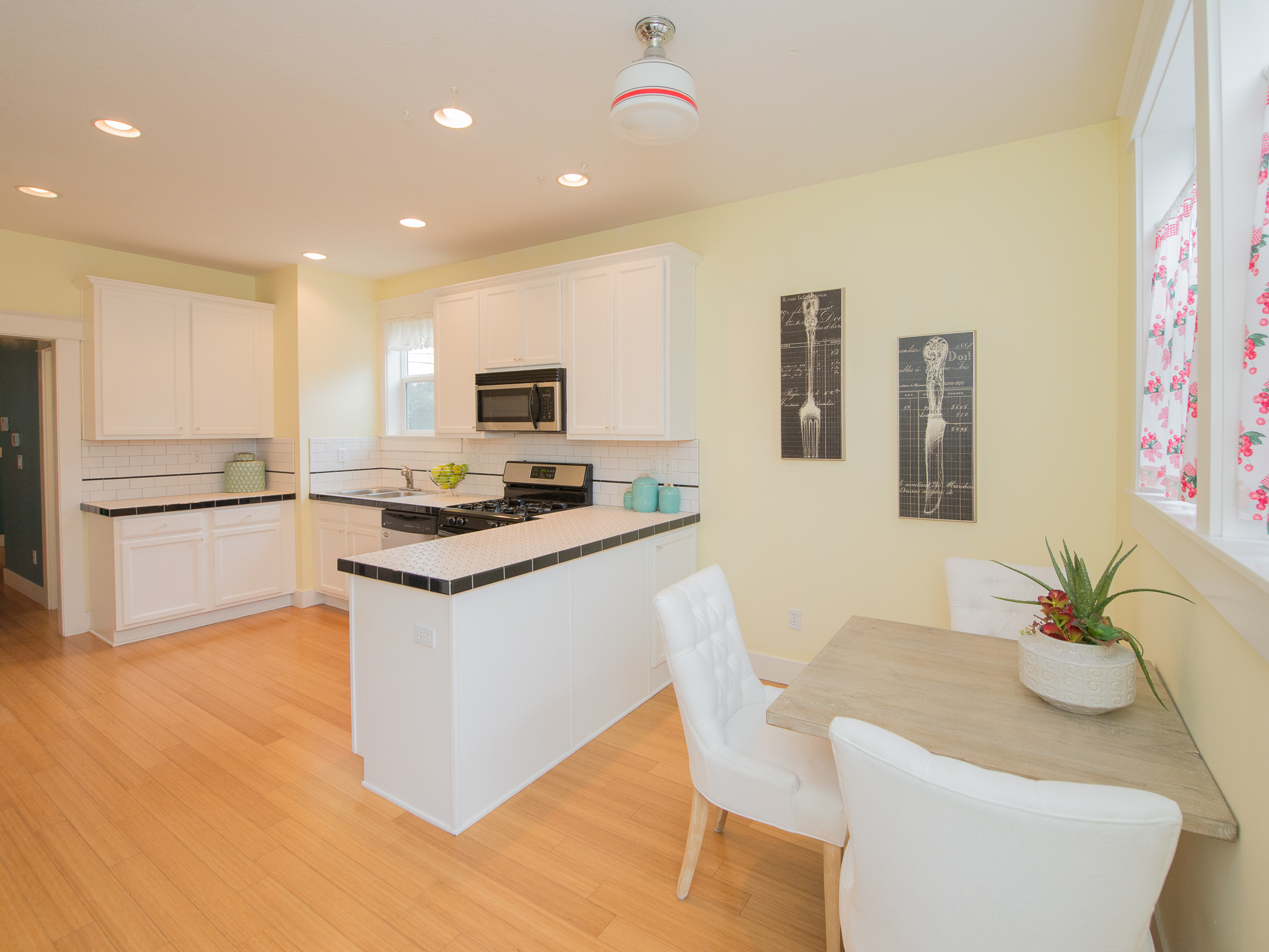Easy living, light-filled and airy 4-square is so dang easy to love. This home has a great floor plan, many updated finishes and located in world-famous Kenton. Love to cook? The kitchen is BIG, light-filled, and tiled to the nines. Gas stove, stainless steel appliances, eating area and teak deck right out the back door. Formal dining with box beams, beautiful lighting and glass french doors inspires fancy dining at home. Cozy living room with gas fireplace and built-ins create the trifecta of perfection.