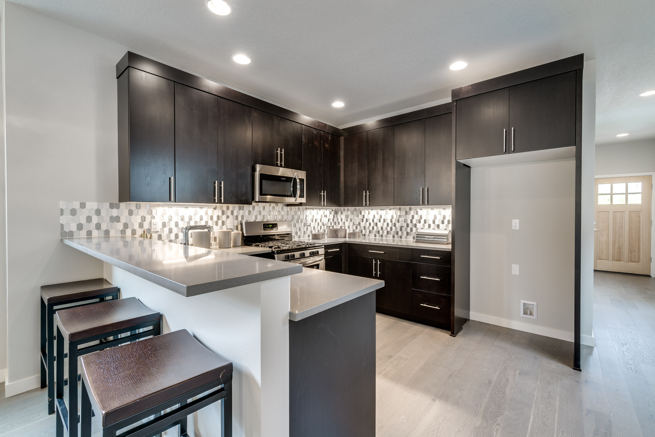 Elegant Craftsman style home in Mt. Tabor. Enjoy an open floor plan, hardwood floors, gas FP and stylish kitchen with sleek tile backsplash, quartz counter tops, SS appliances and breakfast bar. Beautiful en suite master bedroom with vaulted ceiling, double sink and tiled shower.. Third level 4th bedroom or bonus room with plenty of storage. Entertain on the back patio covered by a beautiful pergola. Enjoy all this neighborhood has to offer, steps to Mt. Tabor park where you’ll take in the best sunsets around and a city view you can’t get anywhere else.