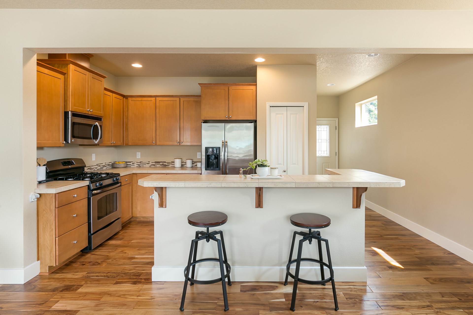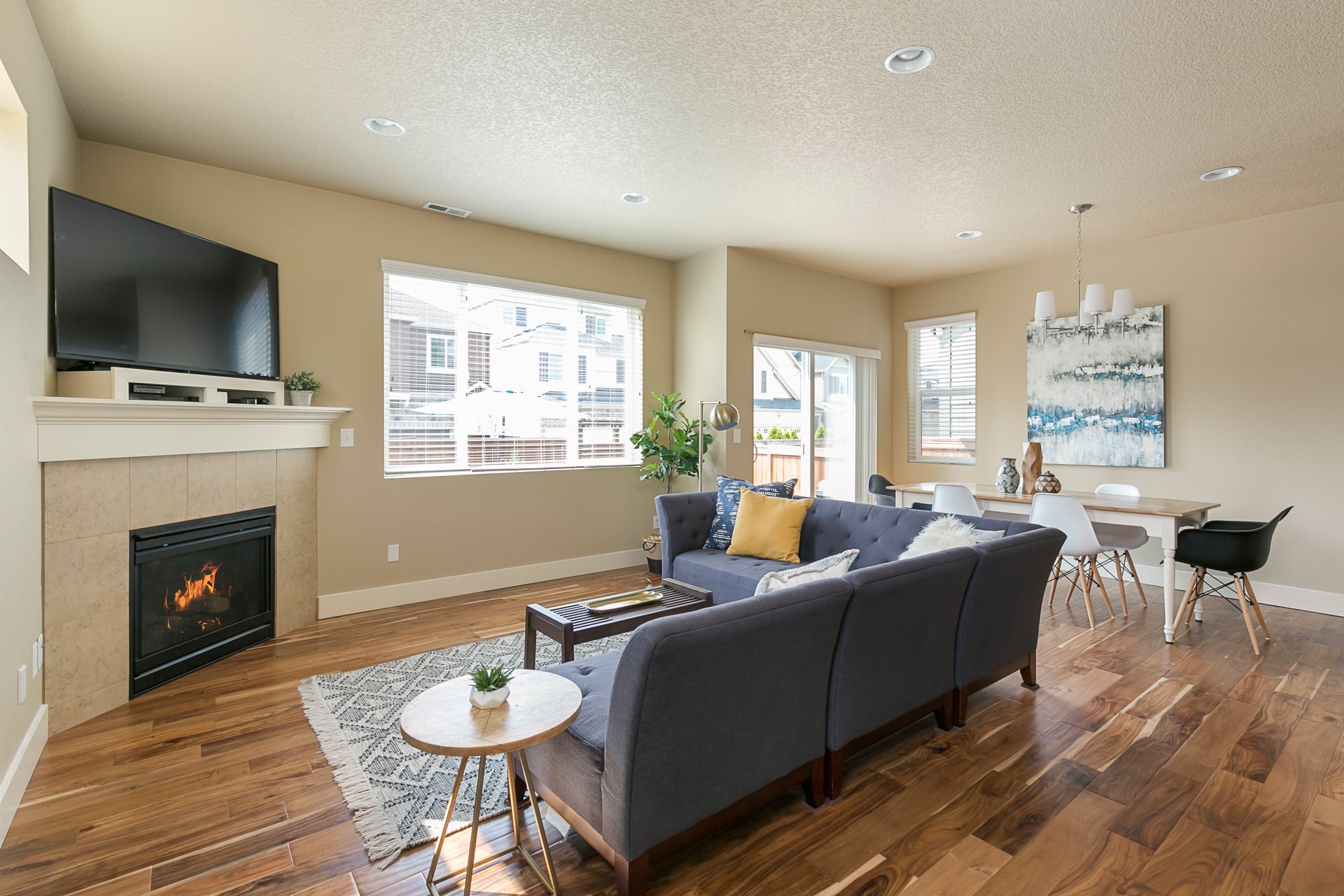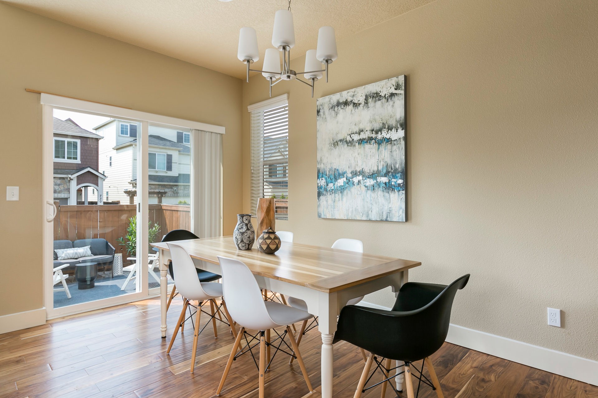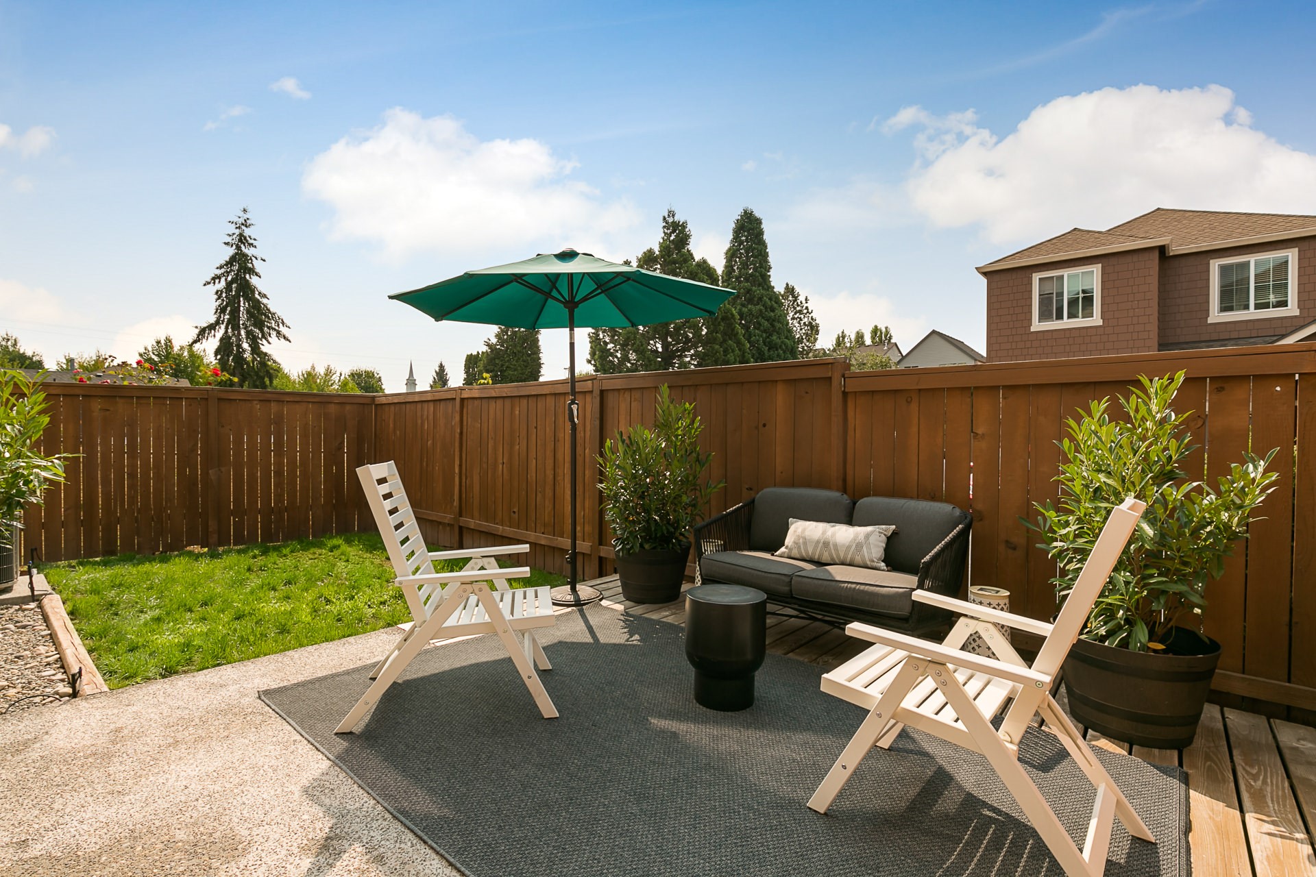 Stylish, one owner home on corner lot. Open concept floor plan featuring a large kitchen with ample counter space and island. New hardwoods throughout Great Room. Sliding door off dining room leads to a fenced backyard. Spacious master suite with walk in closet and bathroom with soaking tub. Remaining 3 bedrooms and additional full bath upstairs. Attached garage. Short walk to adorable neighborhood park. Amazing, central location – Nike, Intel, MAX, shopping & restaurants.