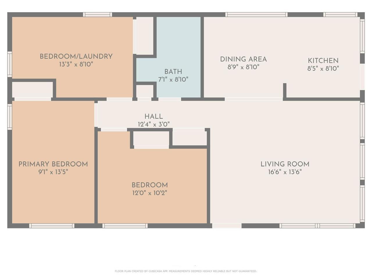 Updated light fixtures and new paint throughout add a bright touch, and durable laminate flooring plus double-paned vinyl windows keep things cozy year-round. There’s even A/C to keep you cool in the summer! One of the bedrooms has been converted into a laundry/office space with washer and dryer included but can easily be turned back into a third bedroom if needed.