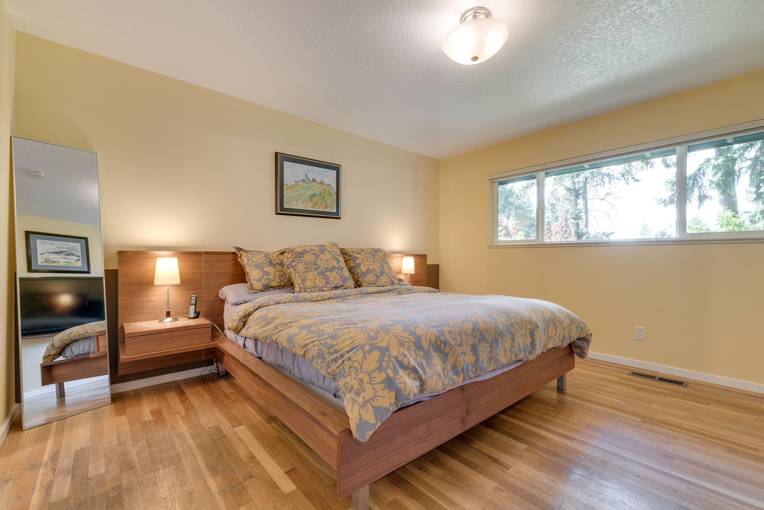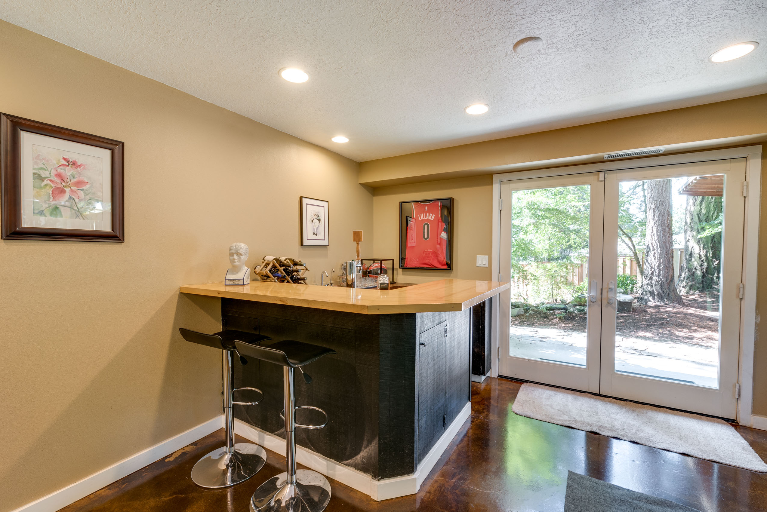 Contemporary Tri-Level in sought after West Slope. Beautifully updated throughout including refinished floors on the main and stained concrete on lower level. Kitchen features vaulted ceilings with skylights, stainless steel appliances, pantry, and built-in office area. Master suite features walk-in closet, hardwood floors, master bathroom with walk-in shower. Lower level features living area, wet bar, gas fireplace, laundry room with sink, full bath, and bedroom. New drainage system, water feature, patio, basketball court, manicured landscaping, and covered hot tub. Two car garage with ample room and extra storage and bonus room underneath.