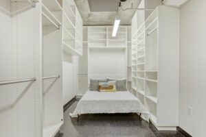 Enjoy a true bedroom with two custom closets and ensuite bathroom. Need a work-from-home setup? The office/den has sliding doors that let you close it off for focus time or open it up to keep things flowing. And when guests stay over, the oversized laundry room pulls double duty with tons of storage and a hidden Murphy bed—surprise!