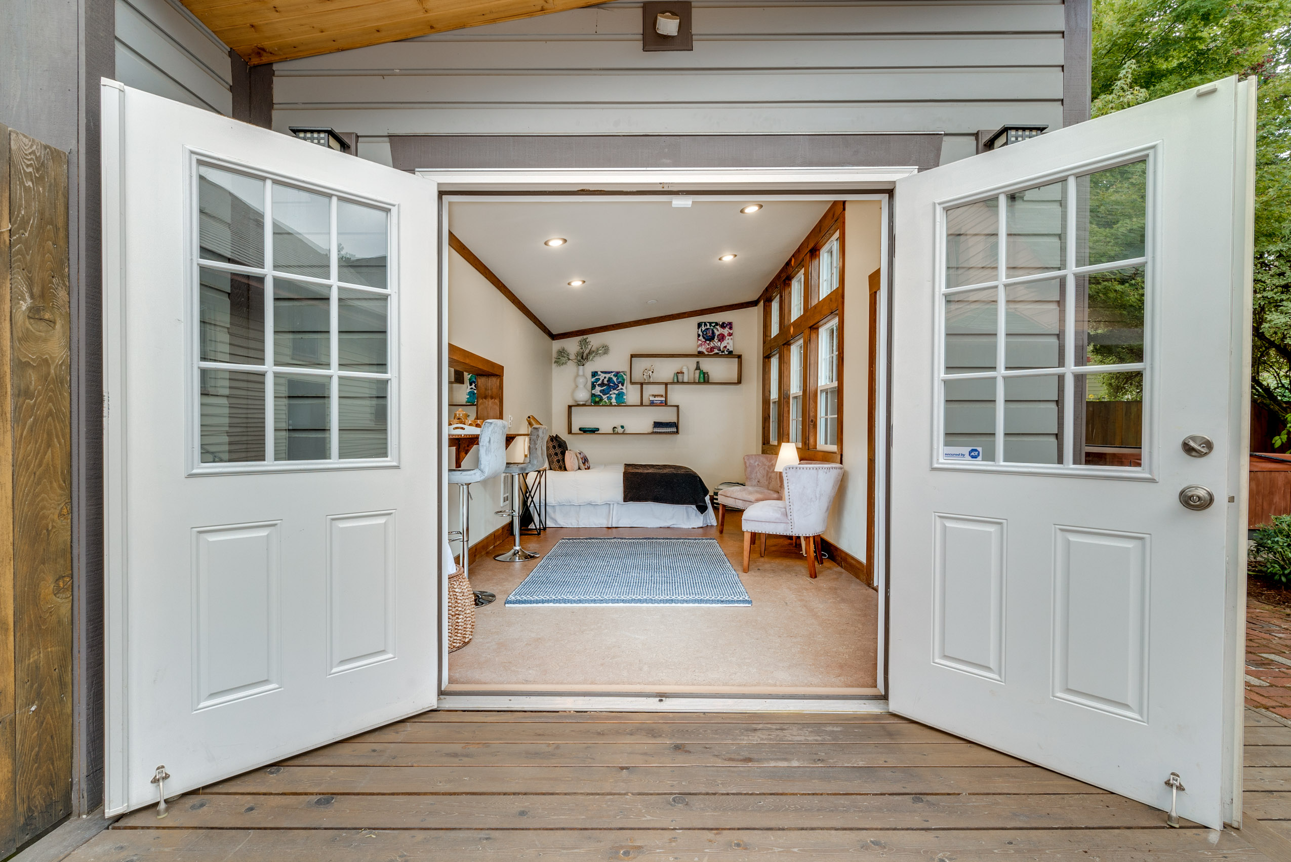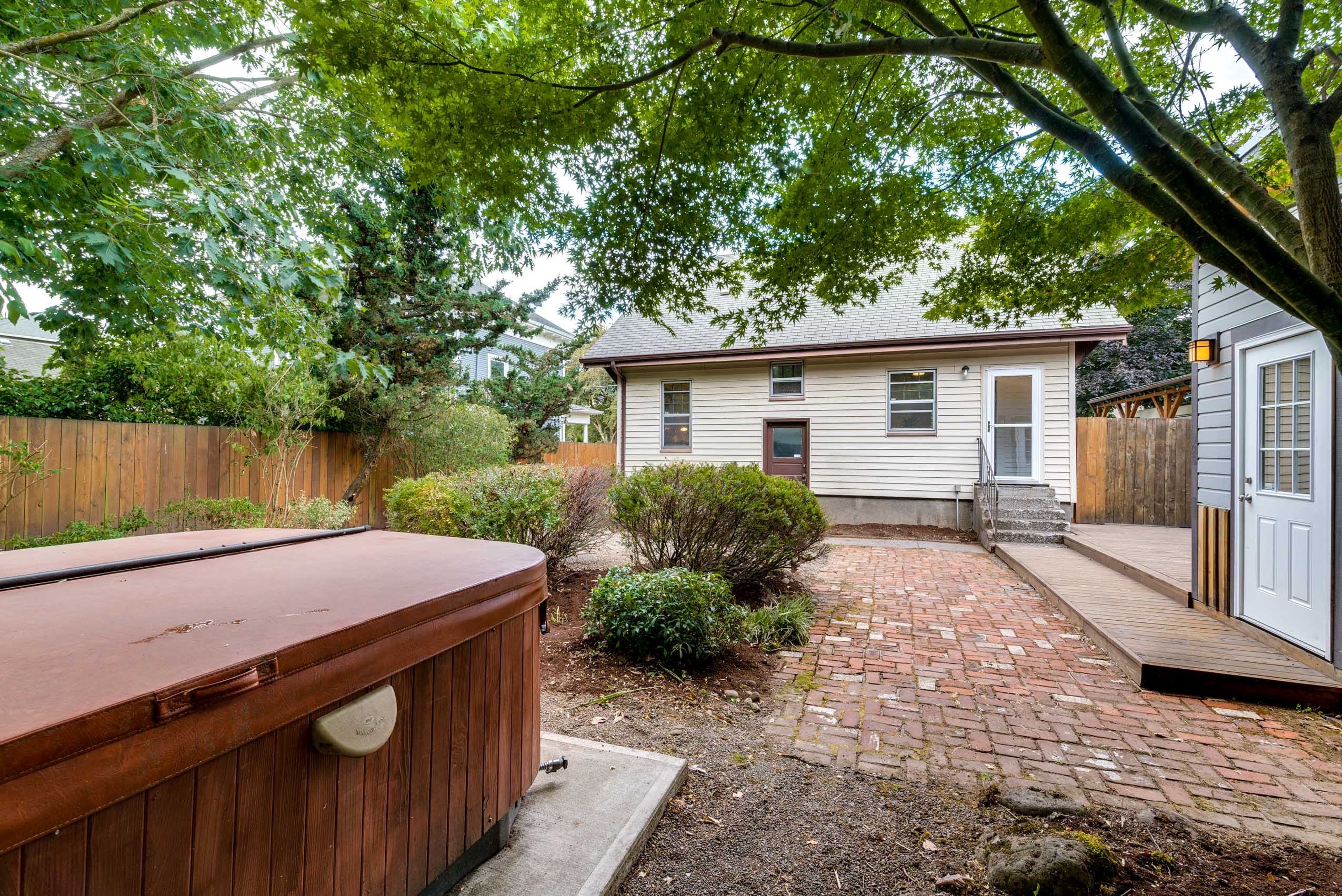 You really can have everything with this enchanting bungalow! Located two short blocks south of NE Alberta Street, this beautiful three bedroom, two bathroom home is just close enough to the action without all the noise. Original wood floors, built-in cabinets, and trim make this living and dining room a beautiful space for entertaining friends and family. The kitchen is spacious, ready to use upon move-in, and has so much potential to make it your own. The bedrooms all have large windows, and are bright, cheery spaces year round. The secluded backyard is perfect for year round entertaining and relaxation, with a large wooden deck, brick patio, and hot tub. A unique, detached studio brings the outdoors in, and makes for another wonderful spot for entertaining. Brilliant details like an extra deep driveway for off-street parking and potential for finishing the basement as an ADU seal the deal!