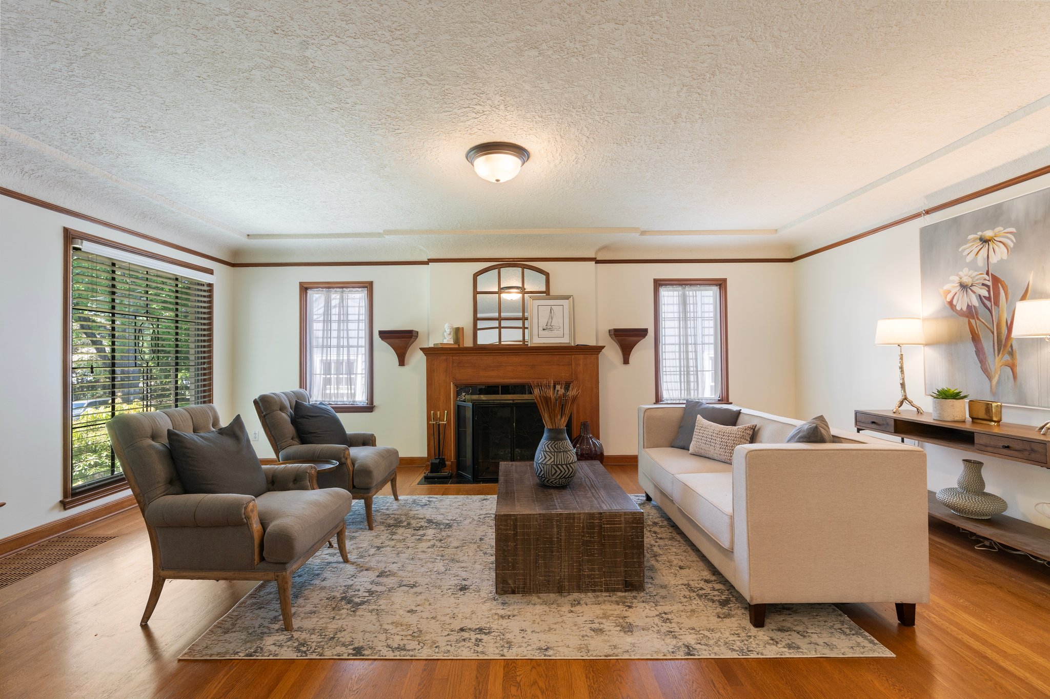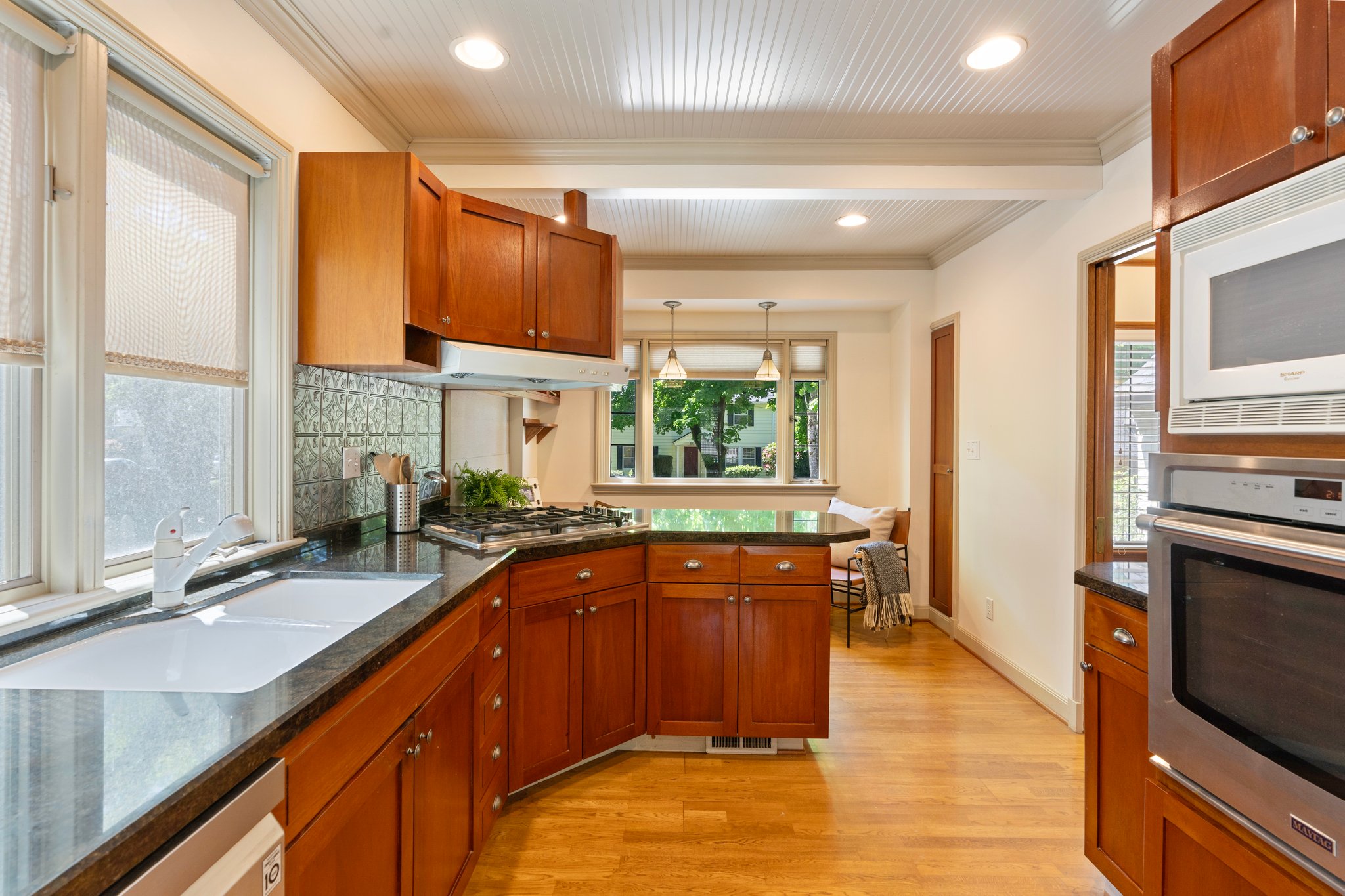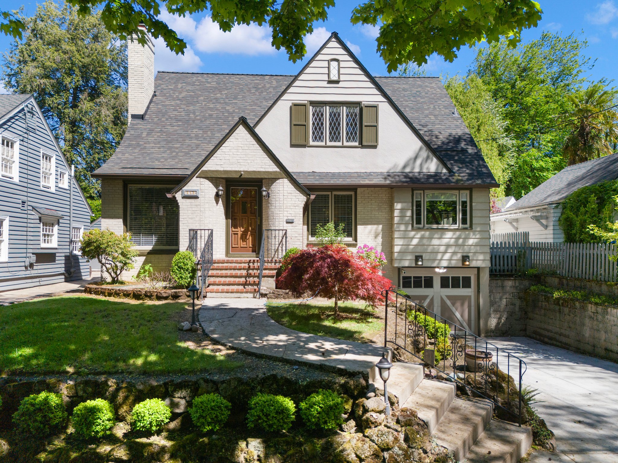 View ListingInside, you are greeted with warm welcoming period details including original mahogany millwork, hardwood floors, coved archways, a cozy fireplace, and leaded glass windows. The grand sized living and dining rooms make entertaining easy, while the thoughtfully designed kitchen features custom cabinetry, granite work surfaces, a pull out pantry, and a nook with a built-in desk. The kitchen leads you into a family room that opens up to a large covered deck complete with a heater and sliding side panels. This spacious floor plan includes a bed and full bath on the main floor, and two bedrooms, a full bath, a bonus room, walk-in hall closets, and an attic eaves/dormer on the upper level complete with high ceilings and ample storage. The lower level features a large laundry/mud room, full lower level workshop, and a 2 car tuck under tandem garage. Other features include Milgard windows, freshly painted interior, air conditioning, newer wiring, plumbing, insulation, and water line.
